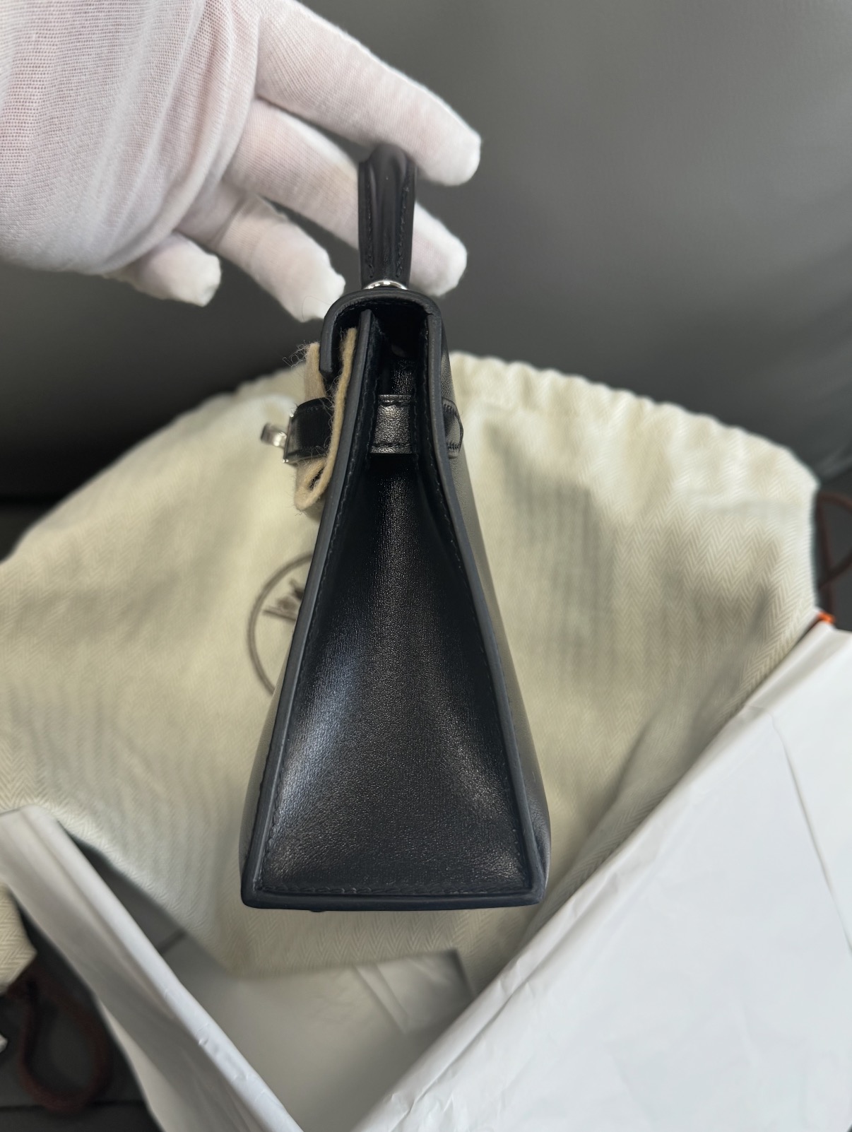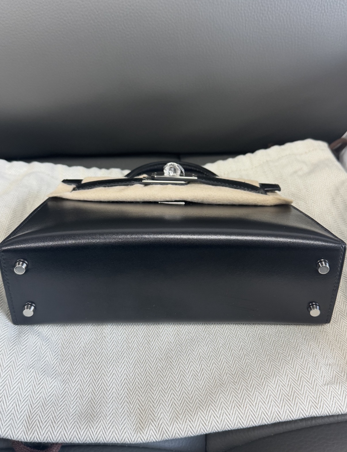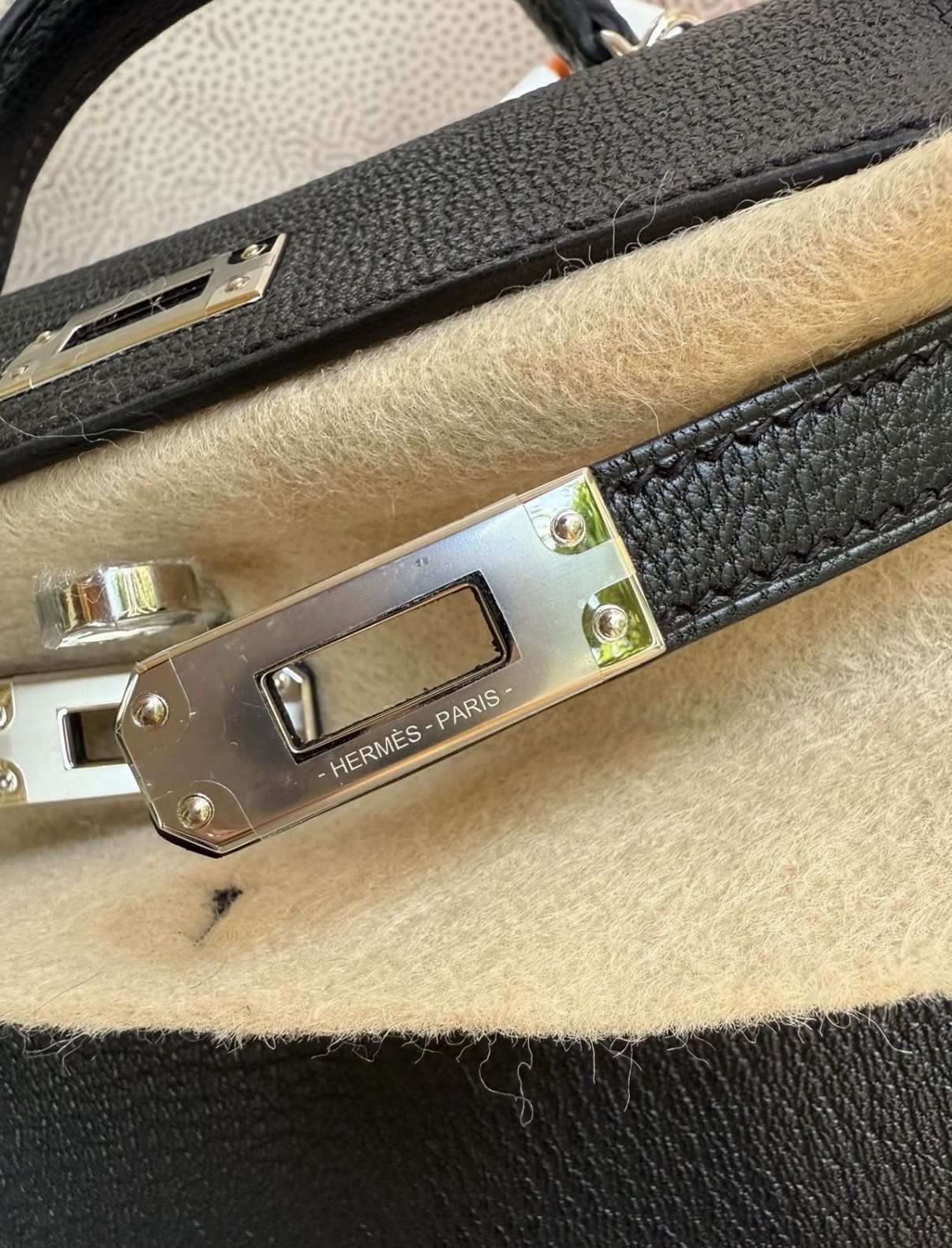 Kelly mini Black goatskin Leather Silver hardware Custom