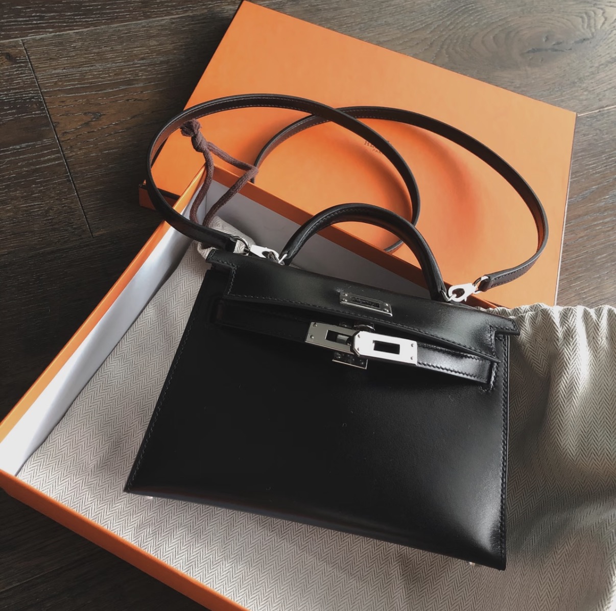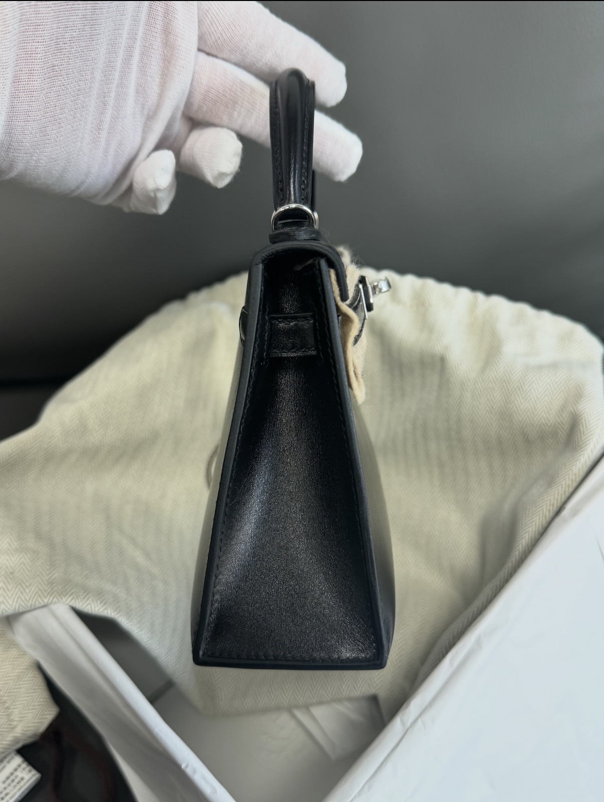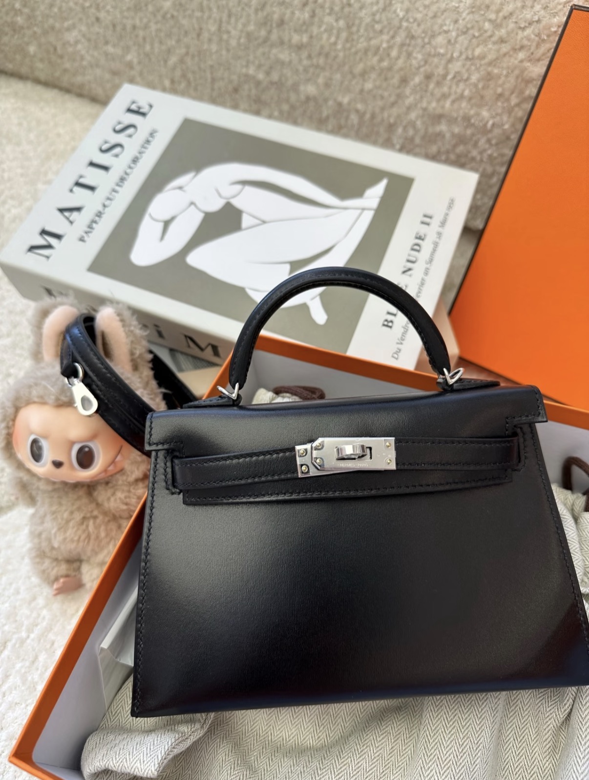 Kelly mini Black goatskin Leather Silver hardware Custom
