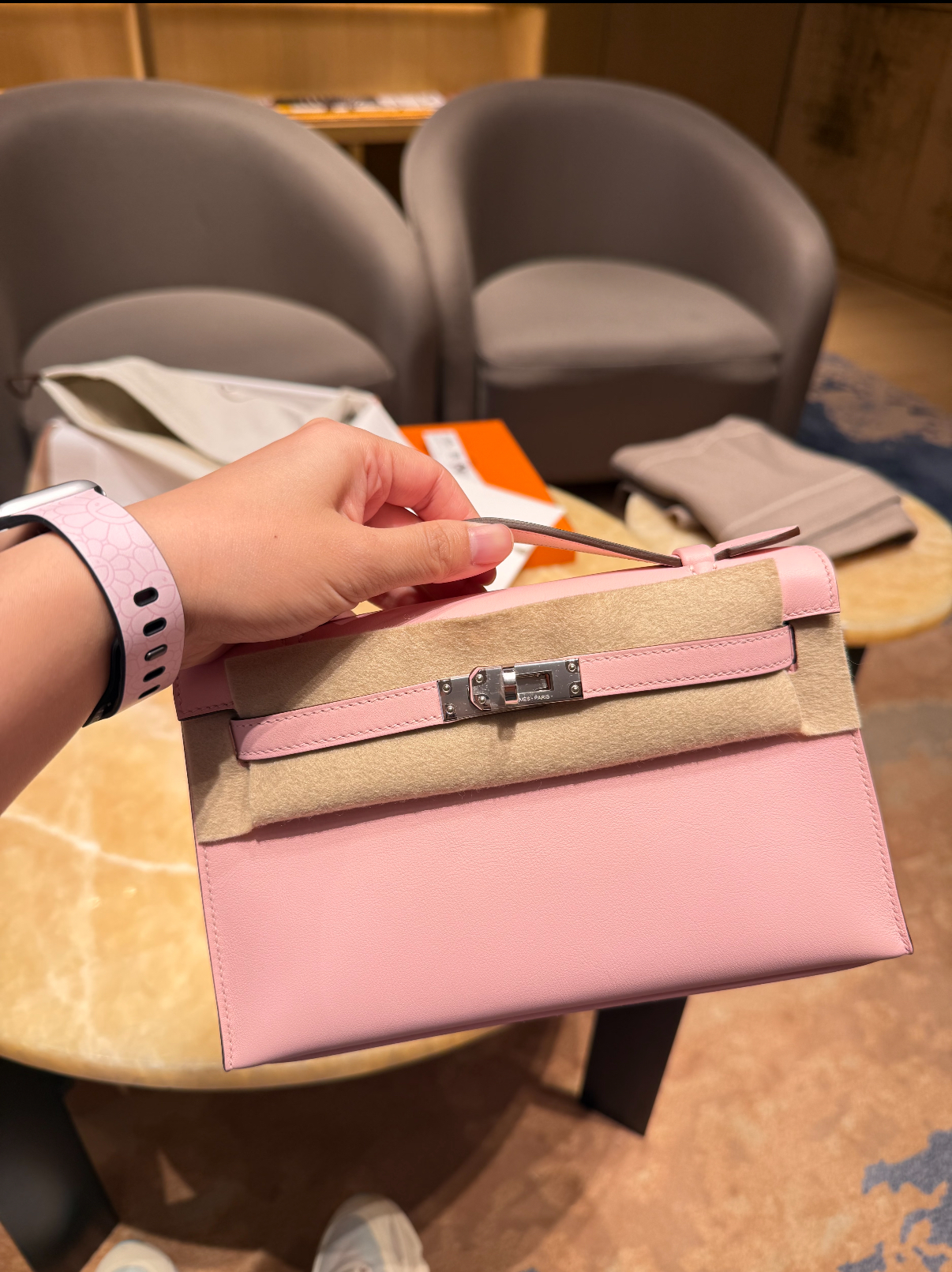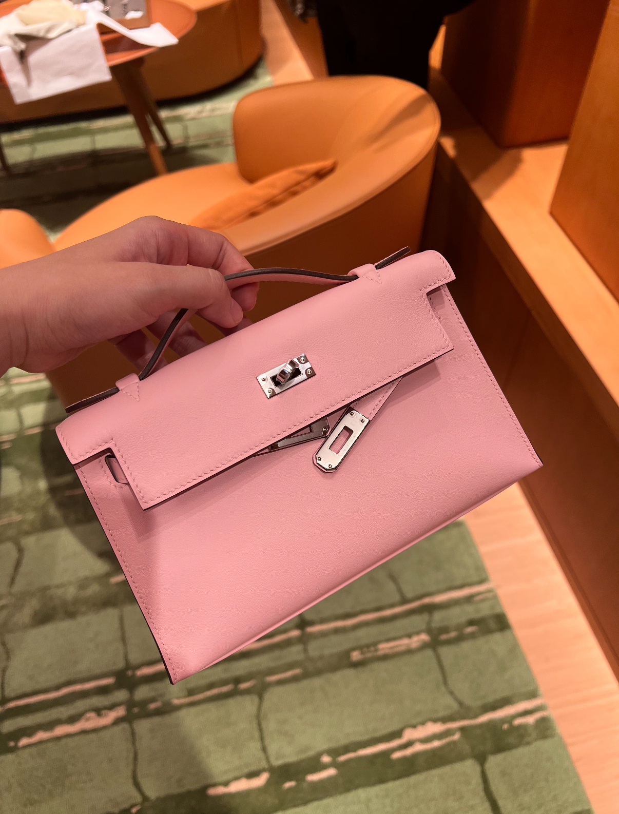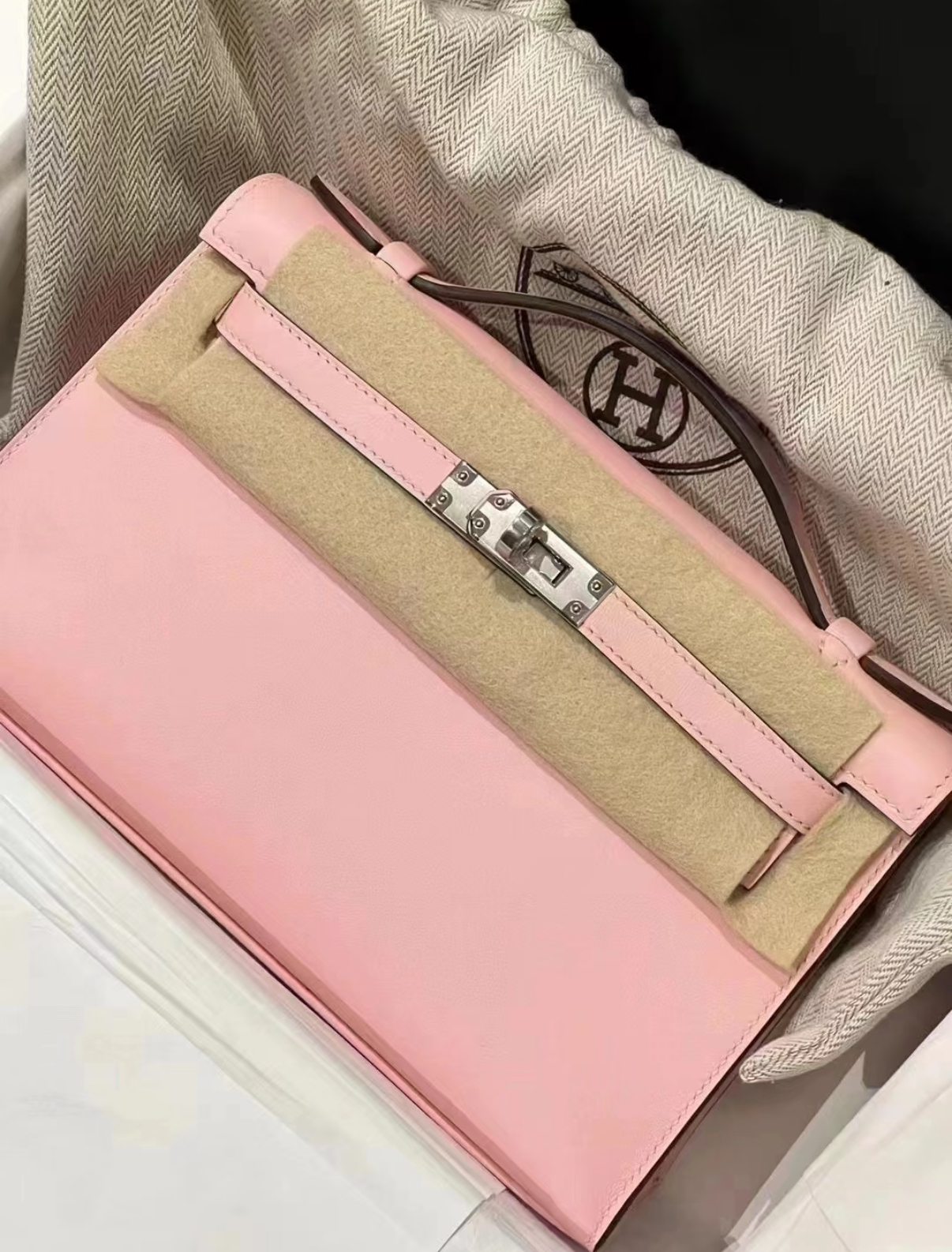 kelly pochette Rose sakura EPSOM Silver Buckle Custom
