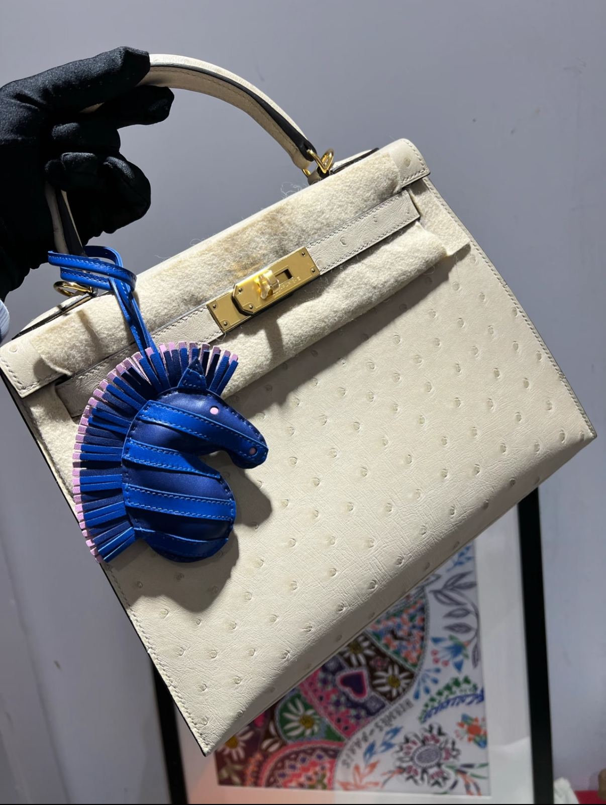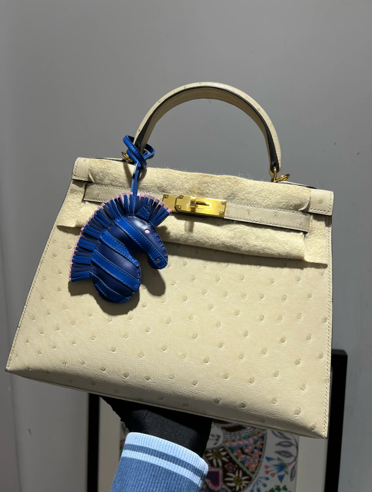 Kelly 25-28 Beige Ostrich Leather Gold Buckle Custom