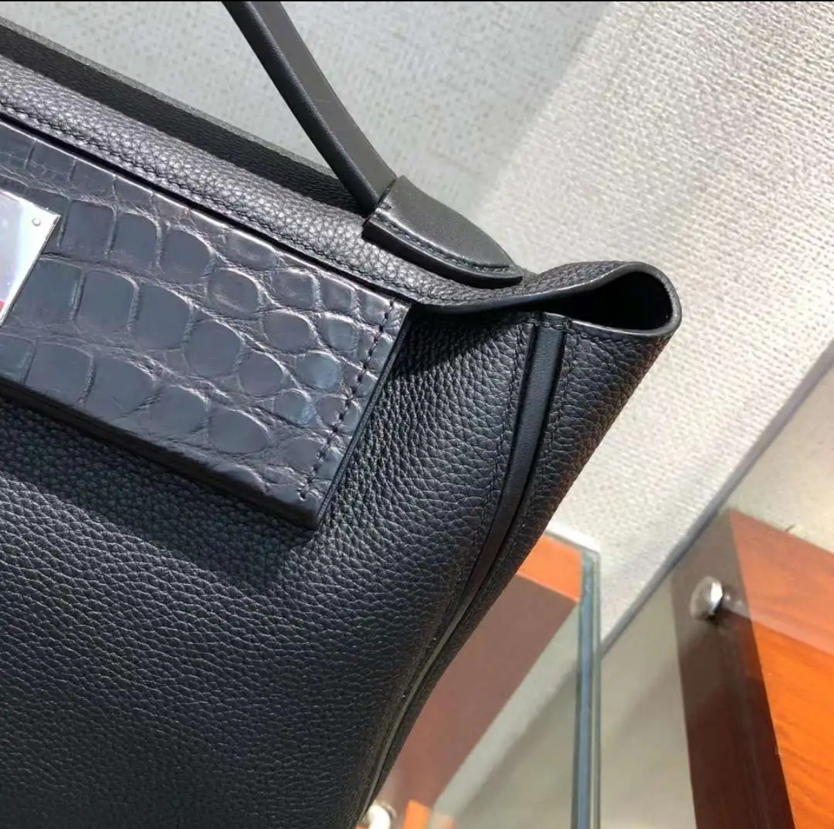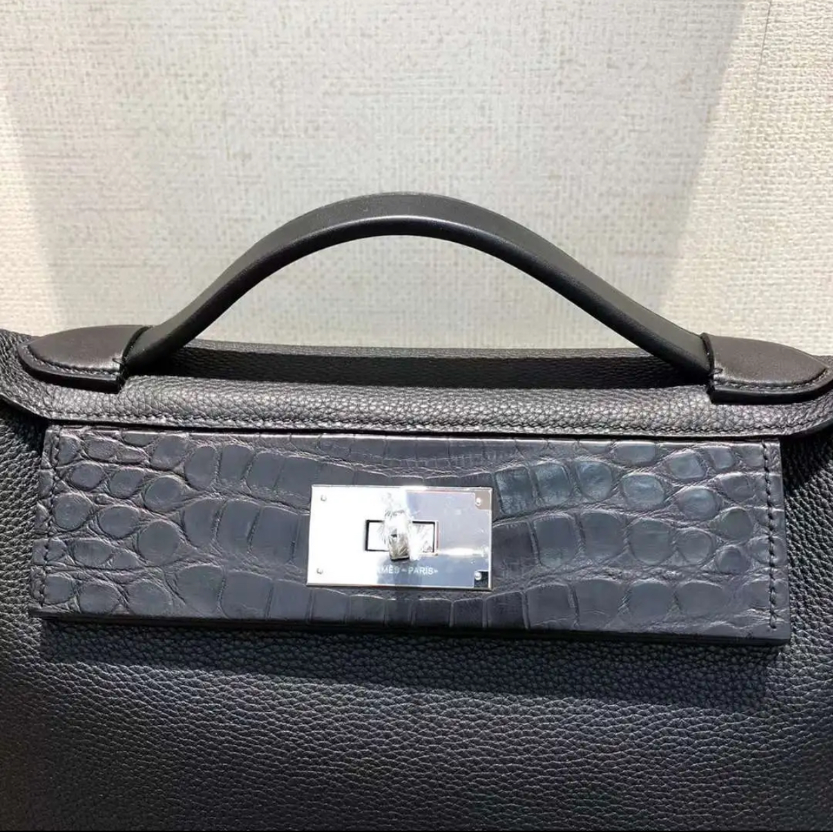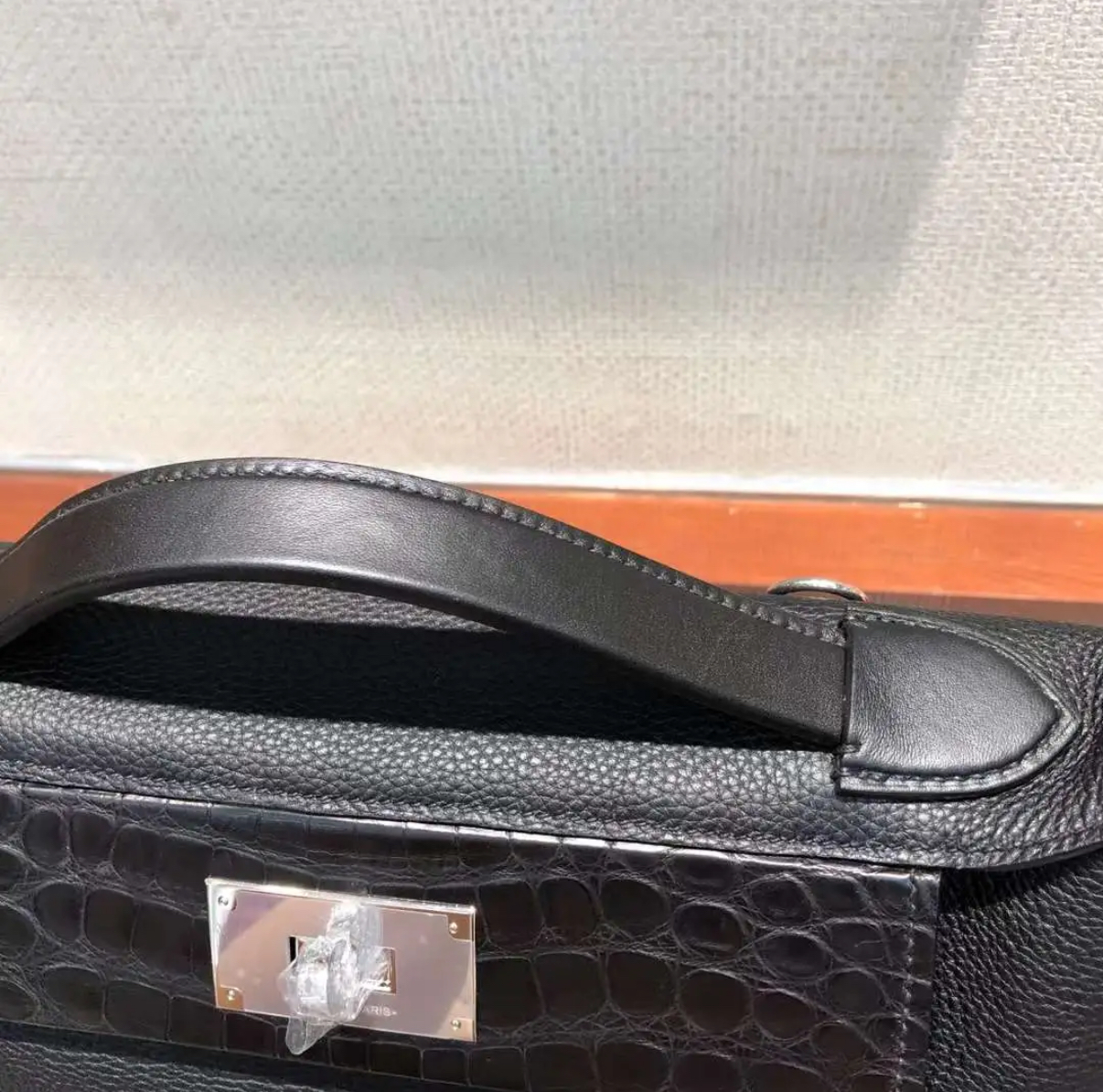 Kelly black, 32 glossy crocodile leather custom