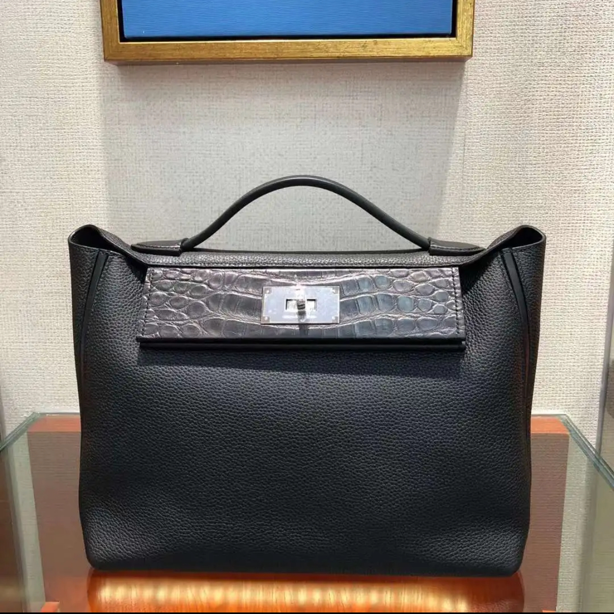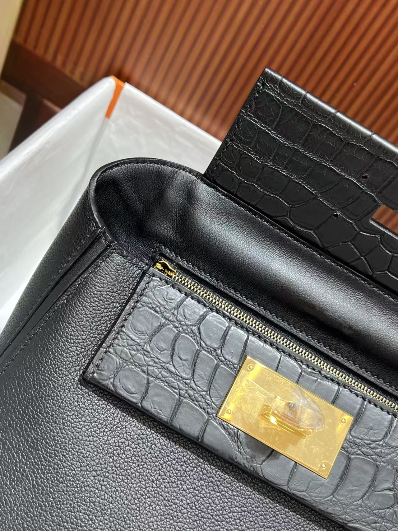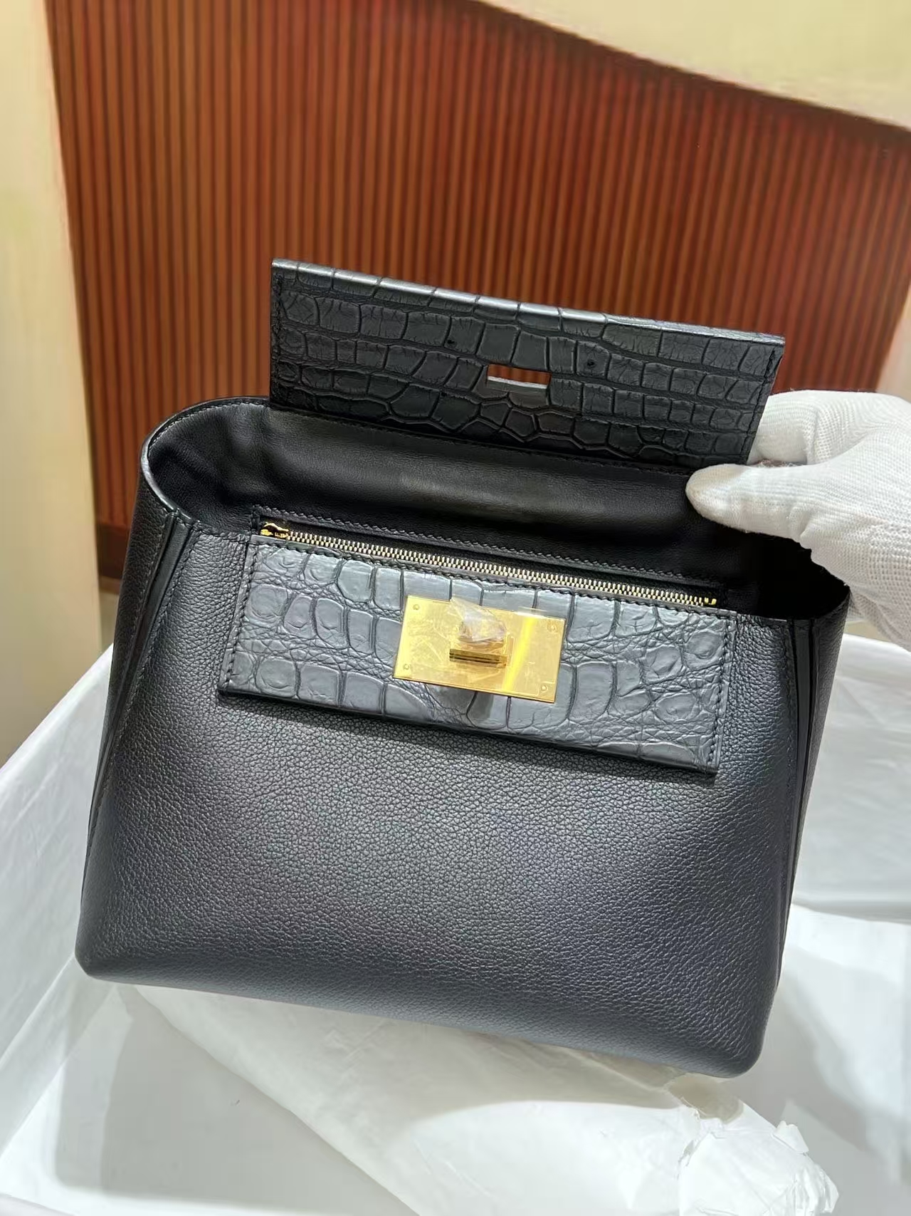 Kelly black, 32 glossy crocodile leather custom