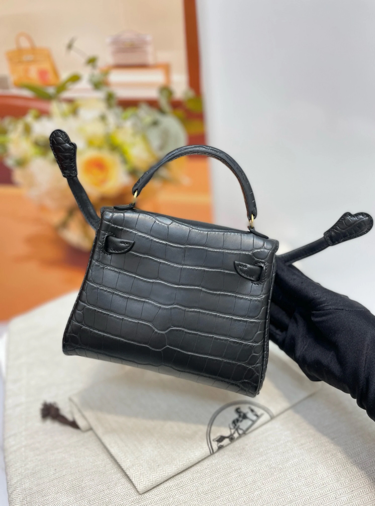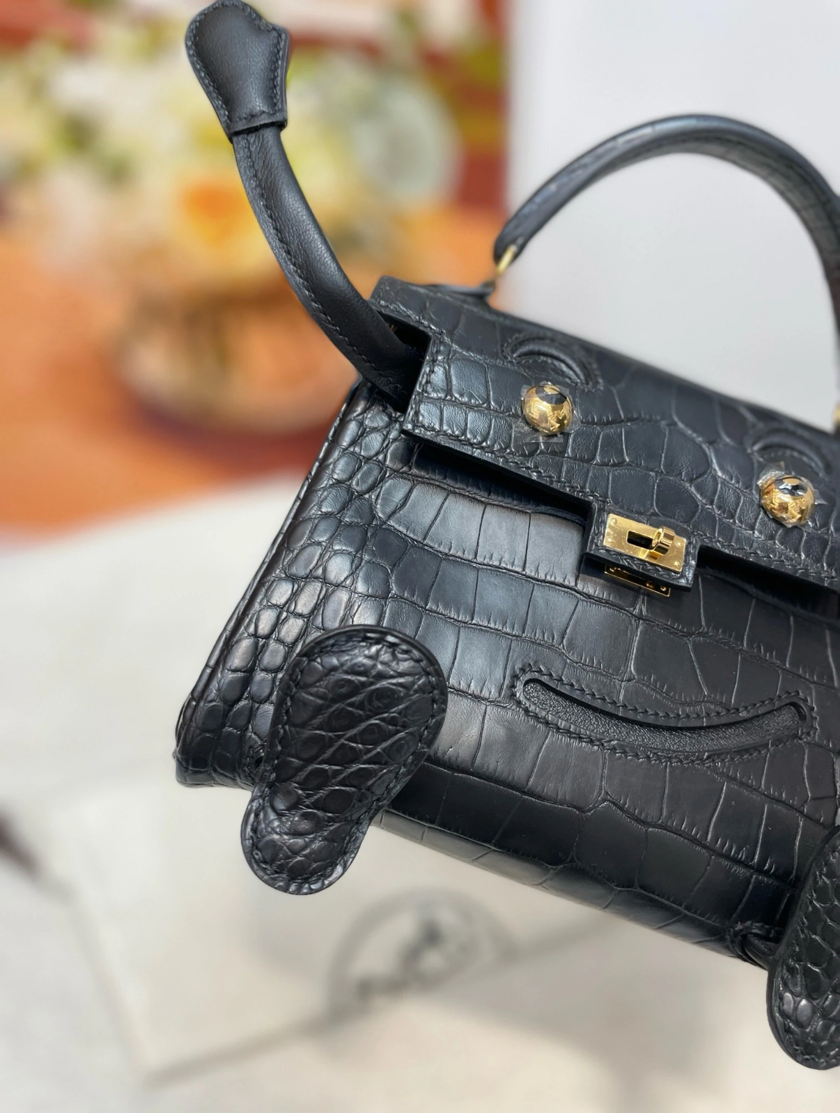 Kellly doll bag Gold buckle crocodile leather custom