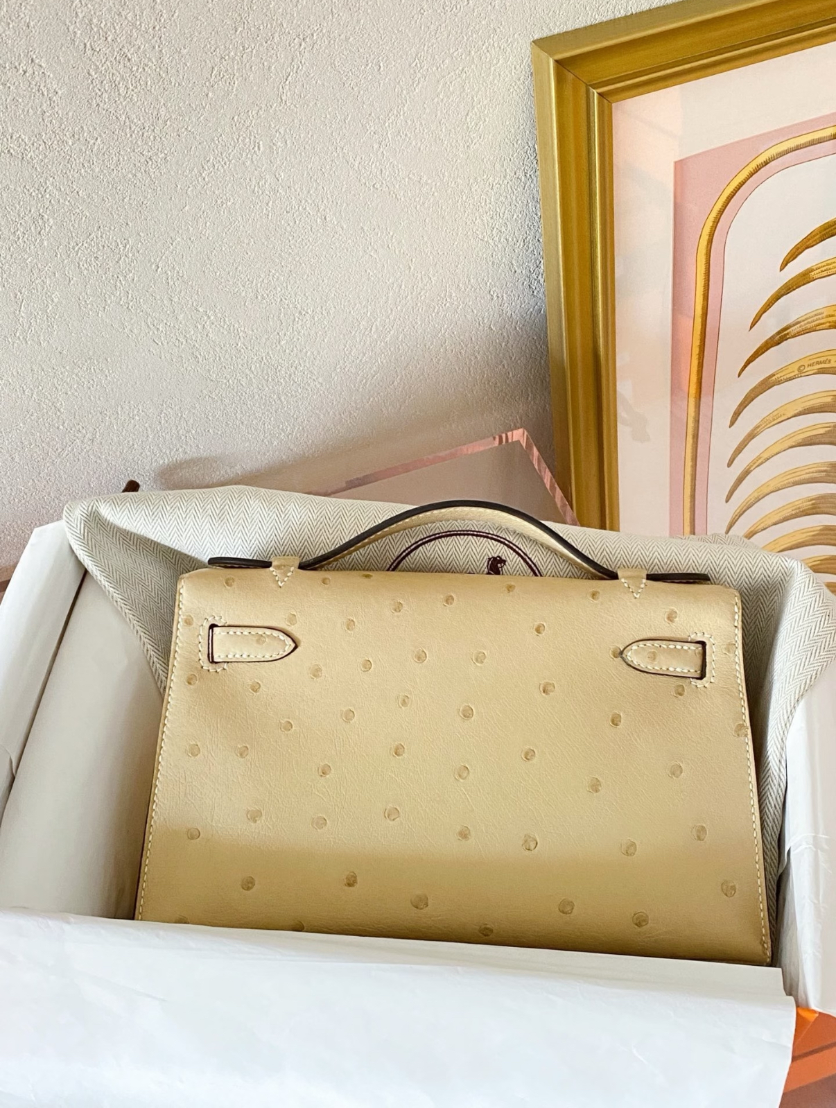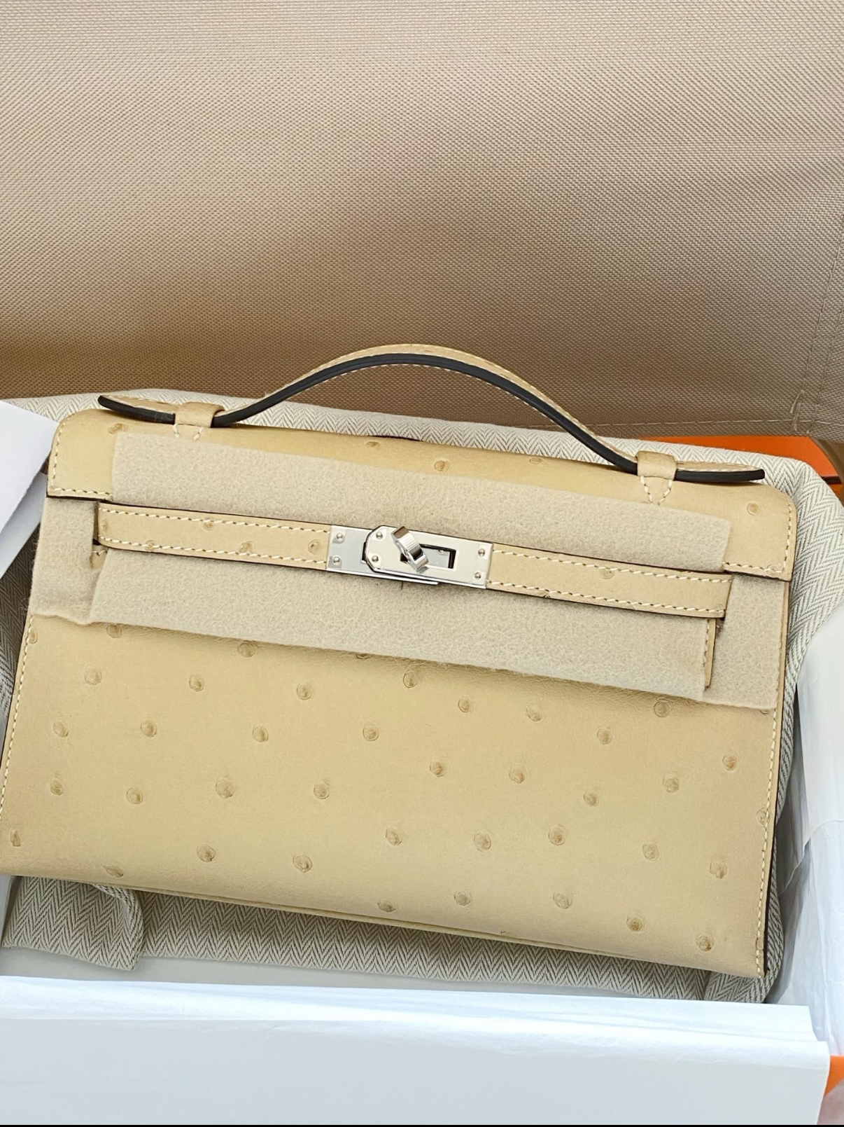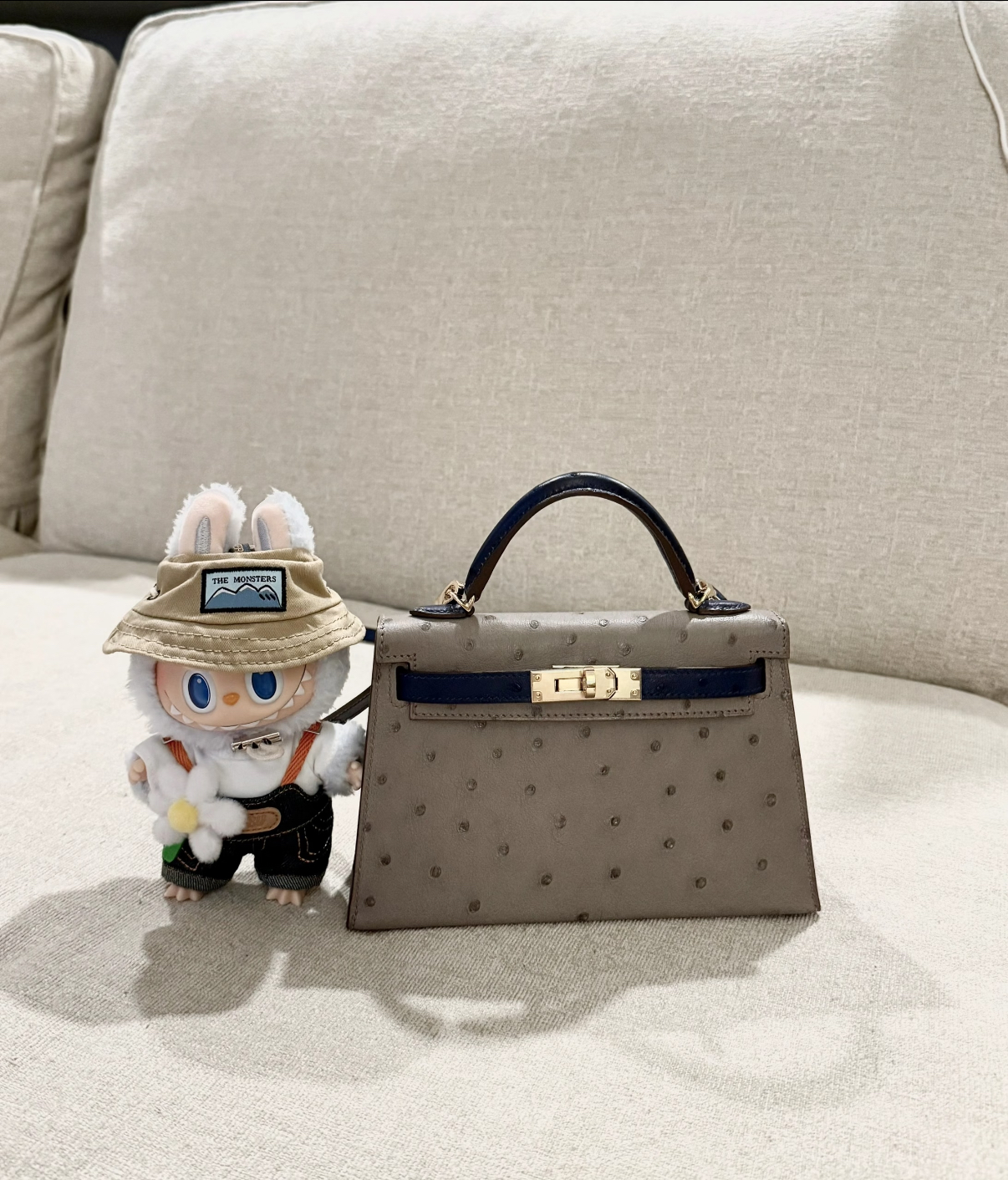 mini Kelly 19cm trench coat gray ostrich leather Customized