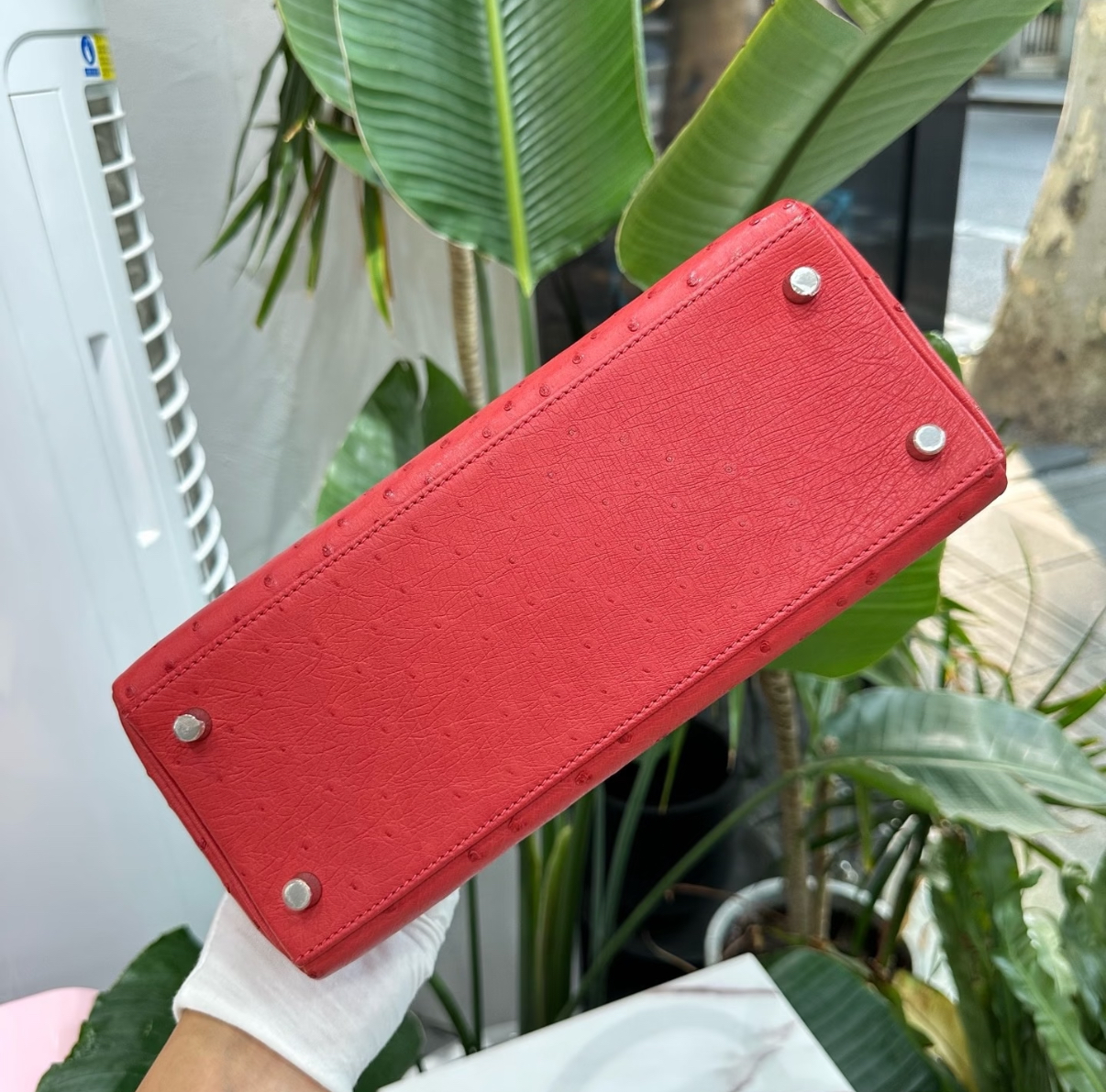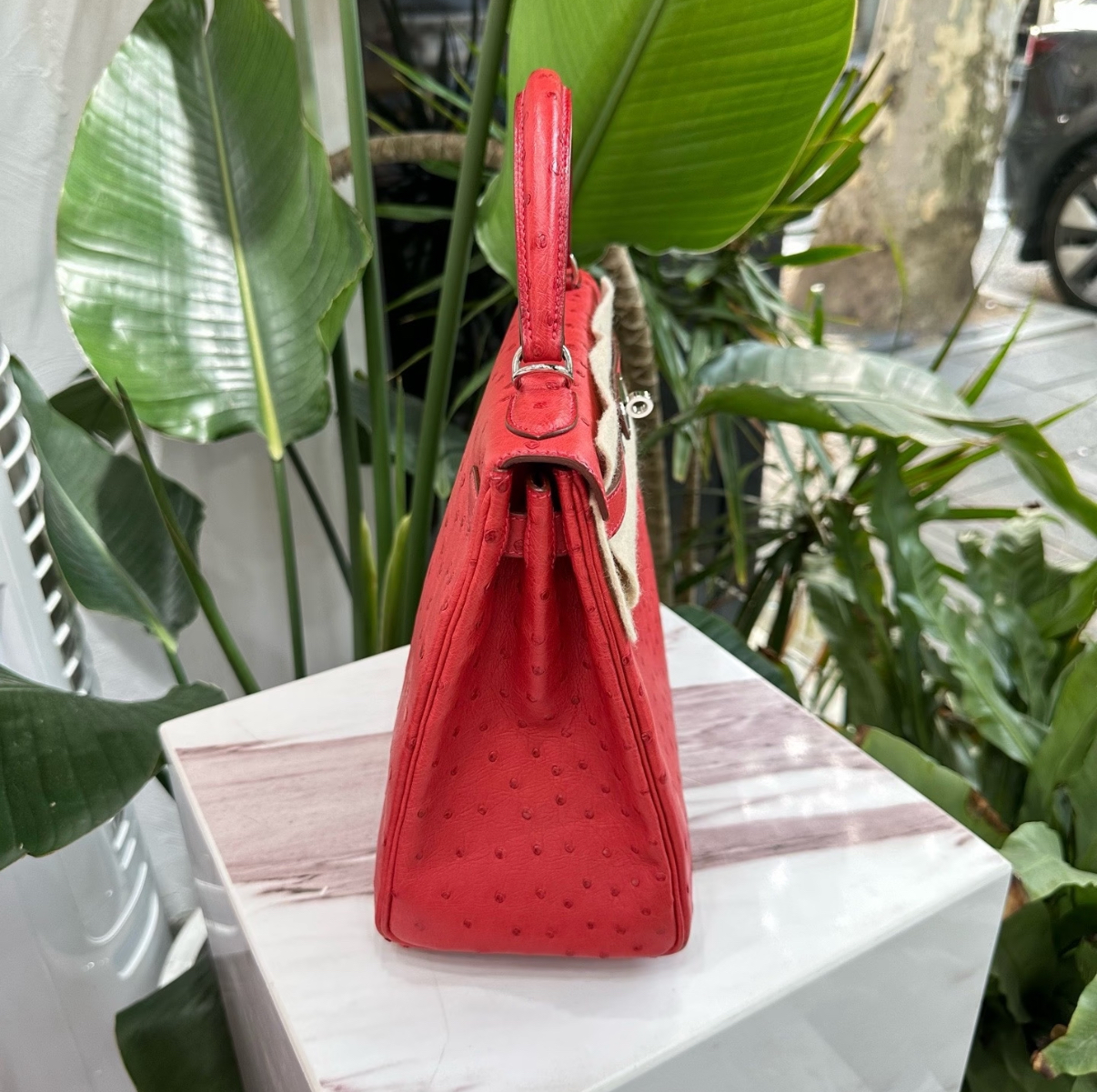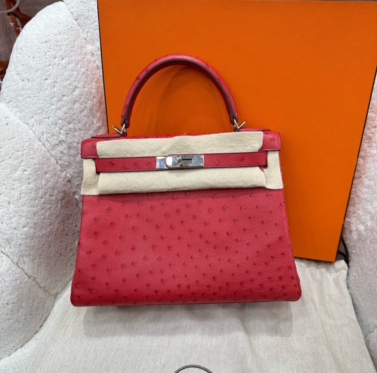 Kelly I 19 Azalea Red Ostrich Leather Custom