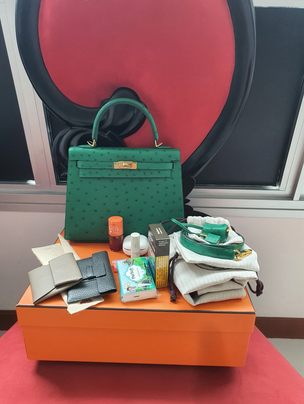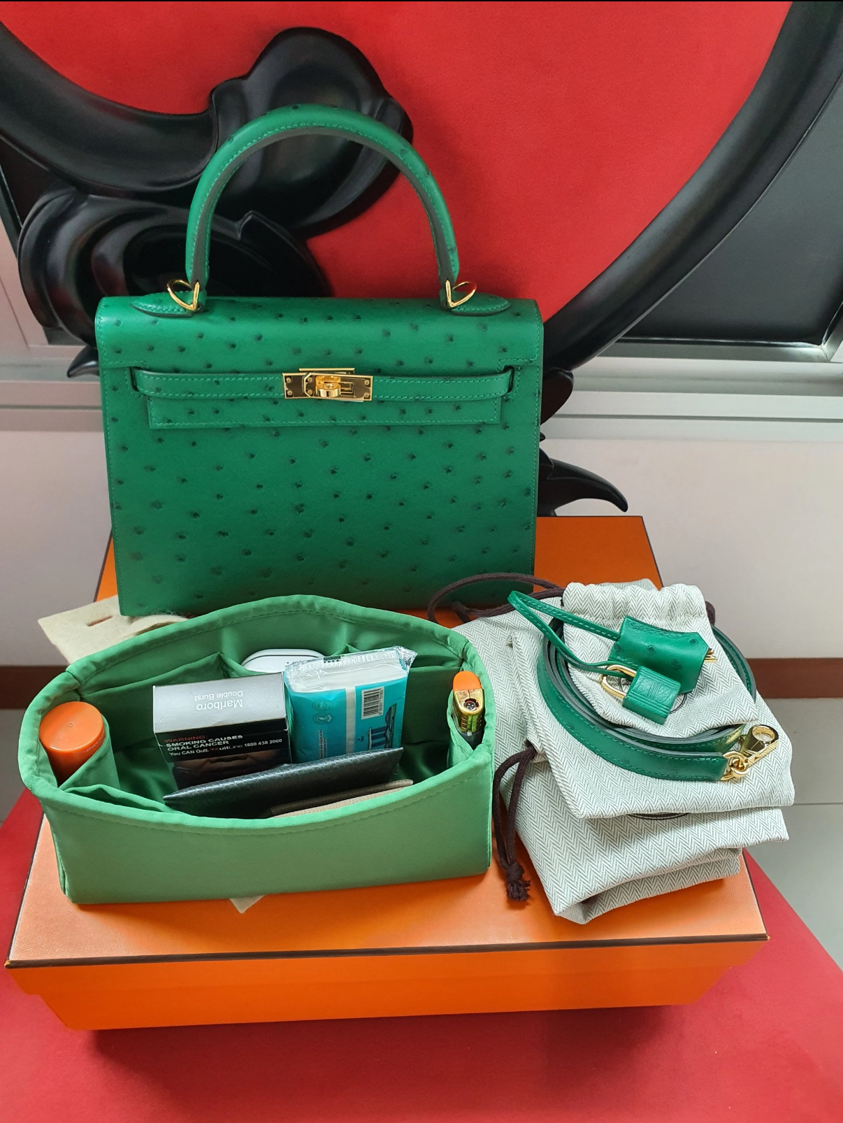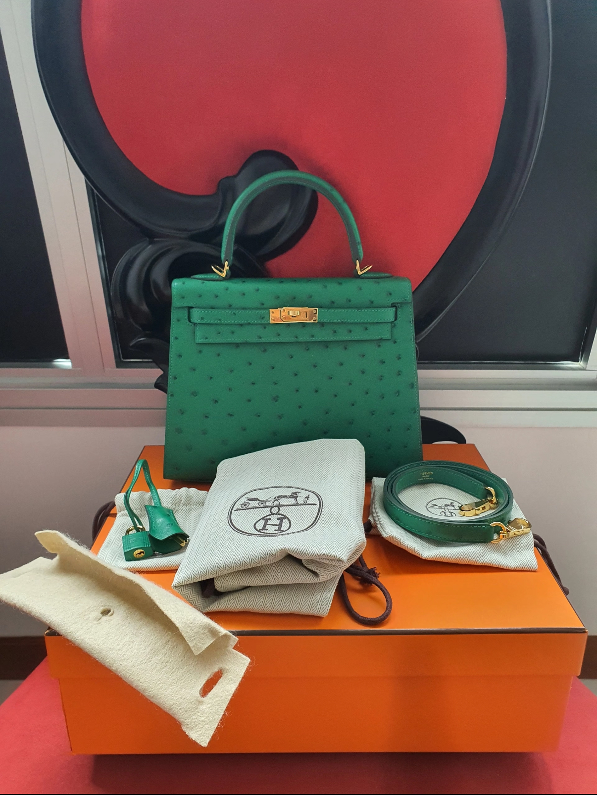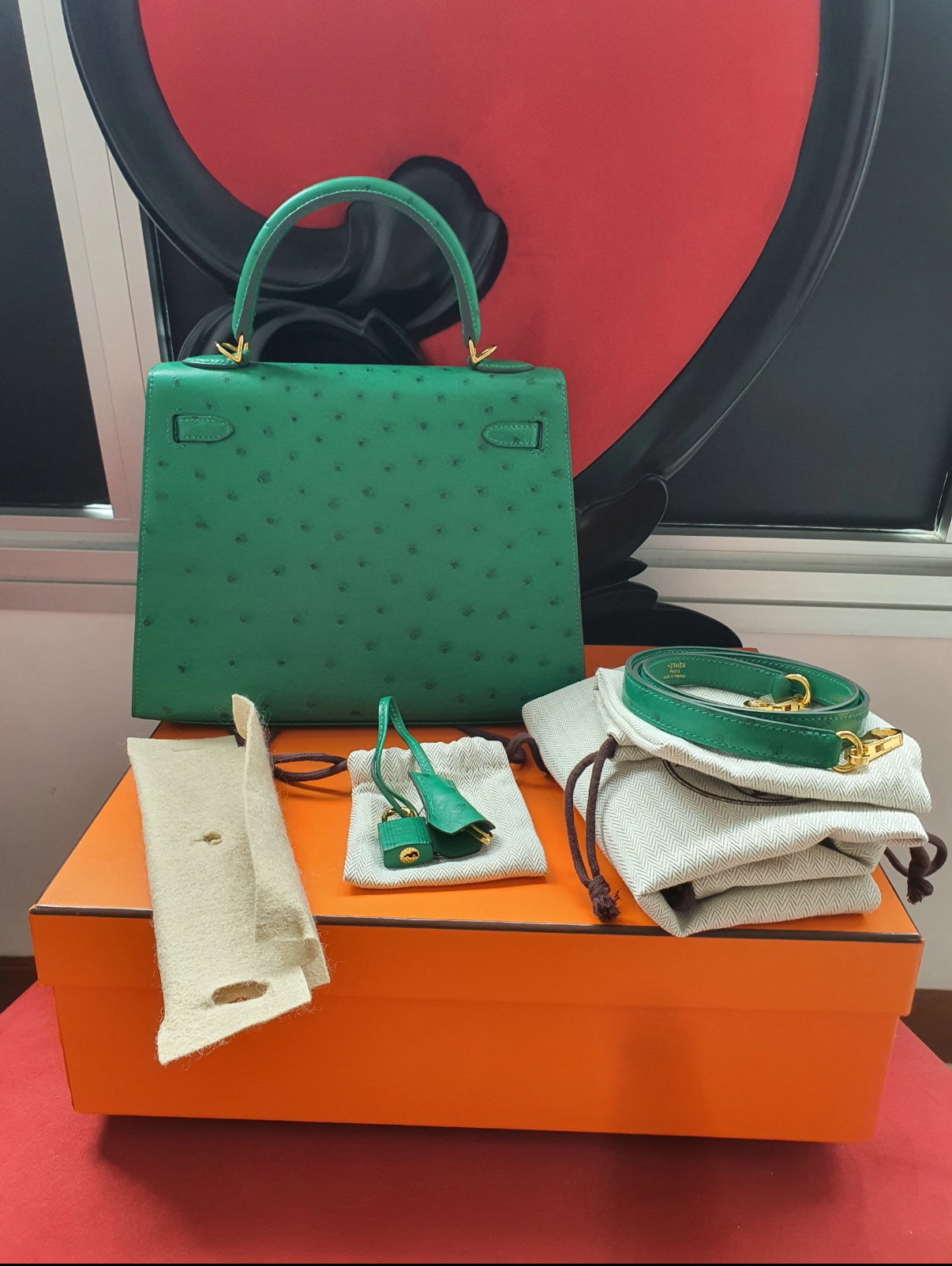 Kelly I 19 Azalea Red Ostrich Leather Custom
