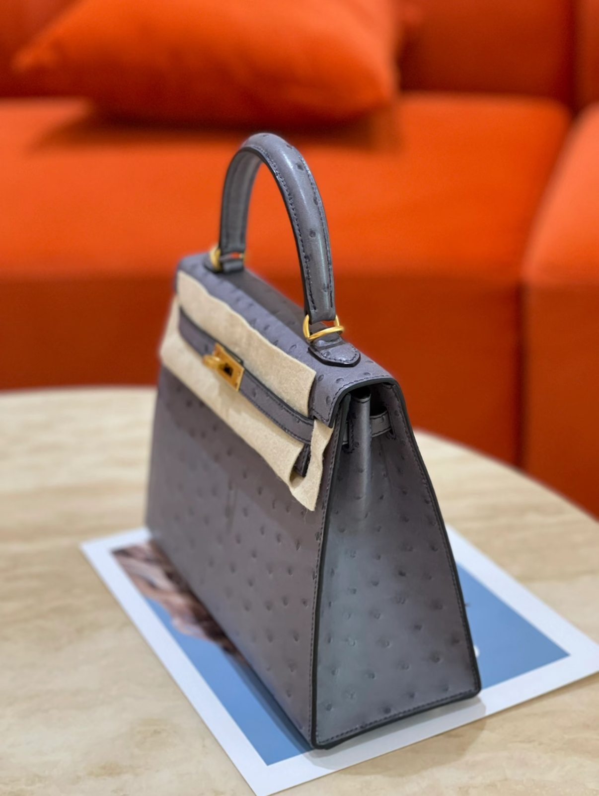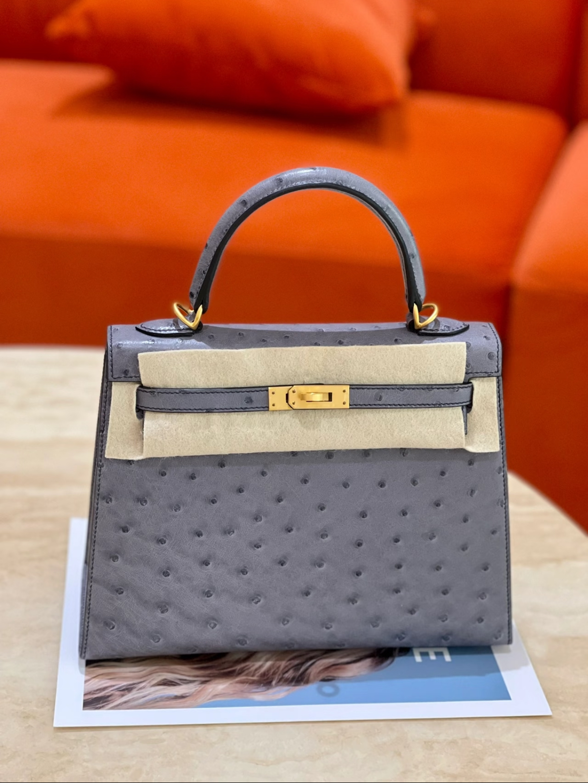 Kelly 25-28 Cumulus gray Ostrich leather custom