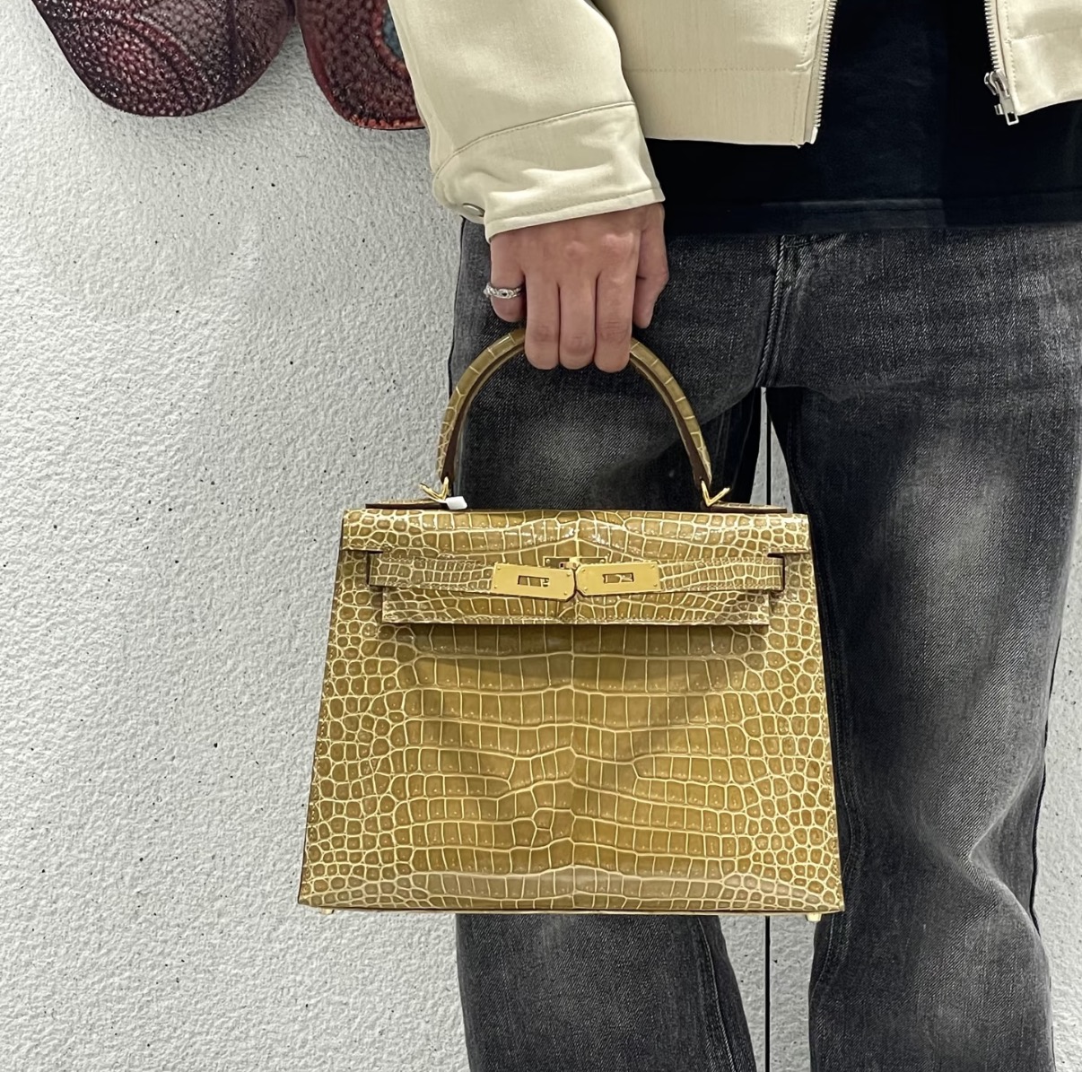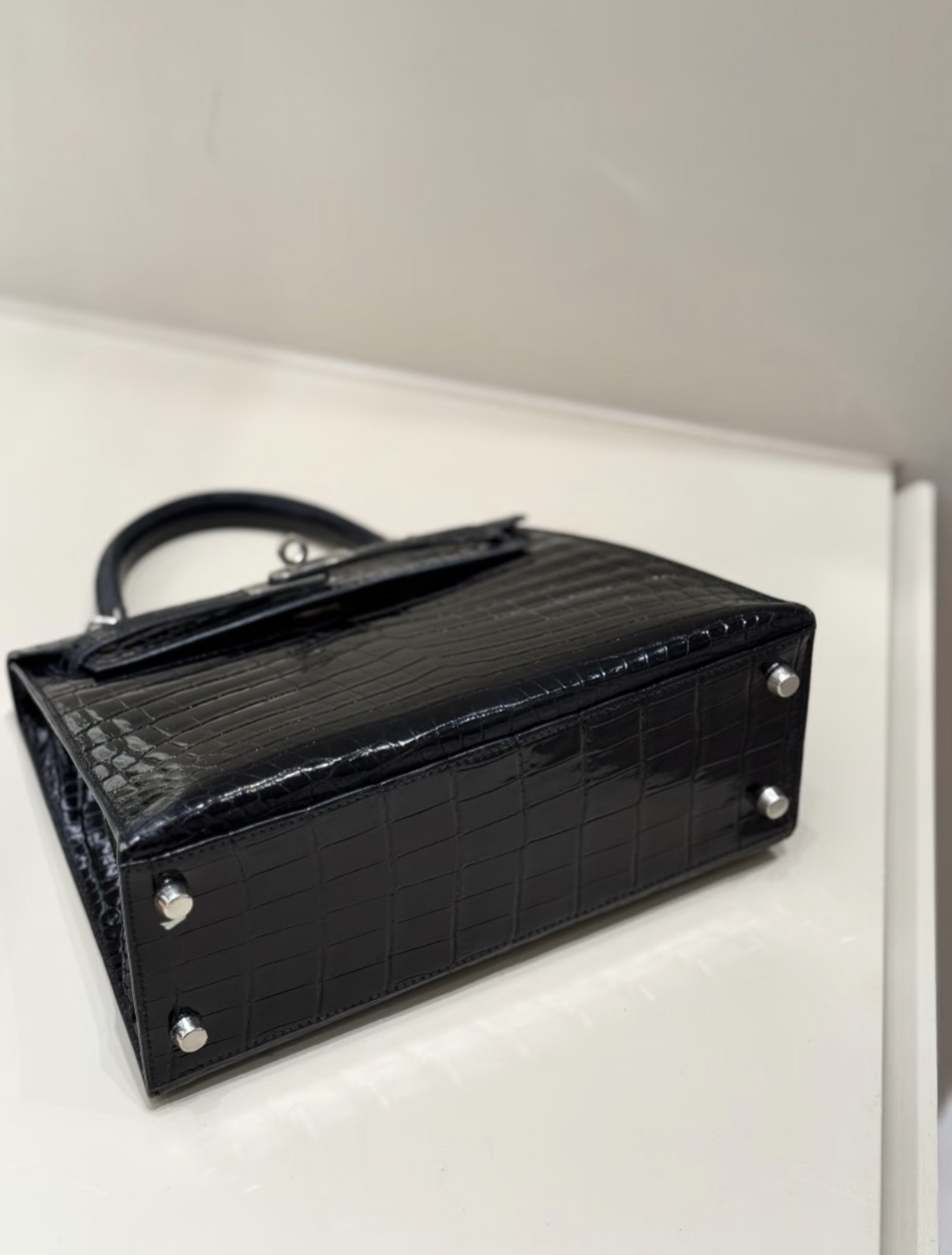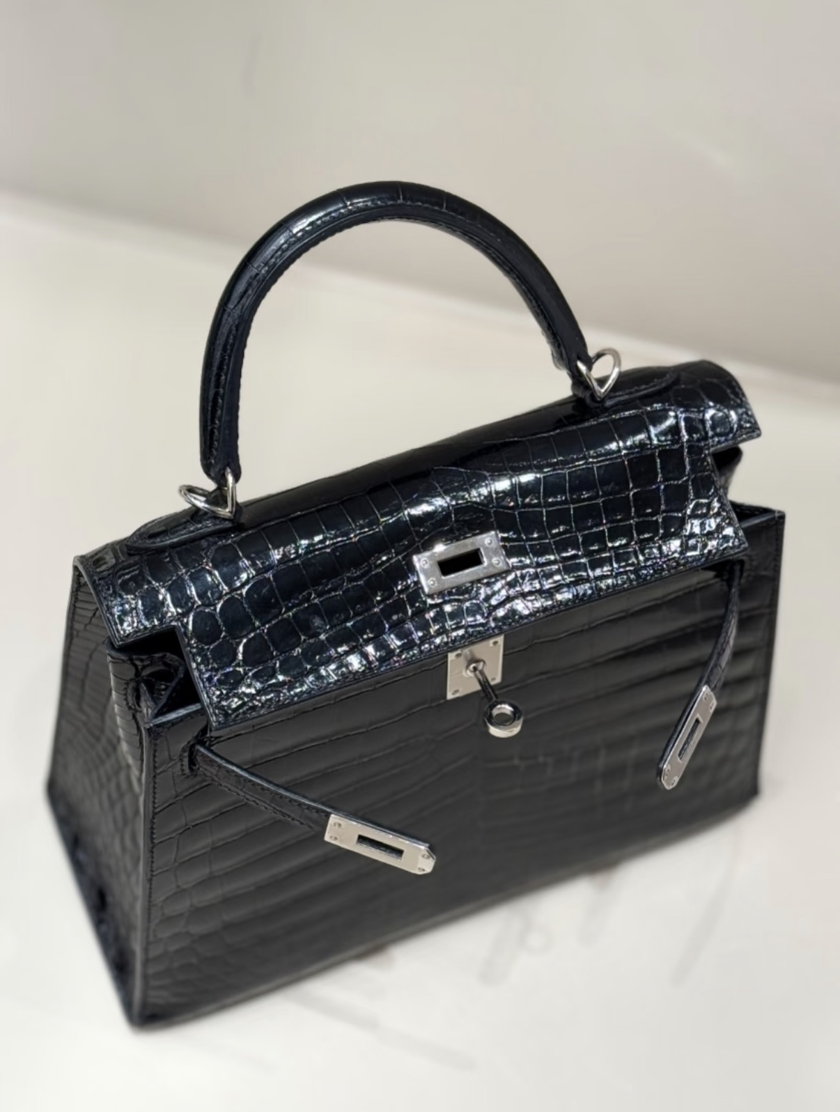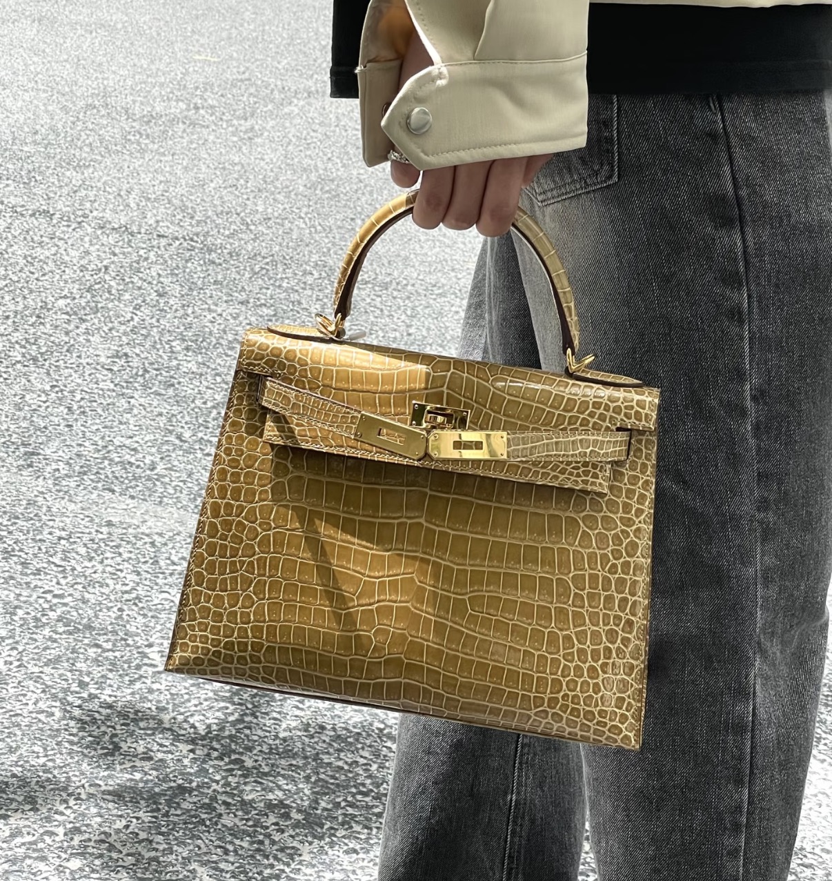 Kelly Dust-colored Glossy Crocodile Leather Custom