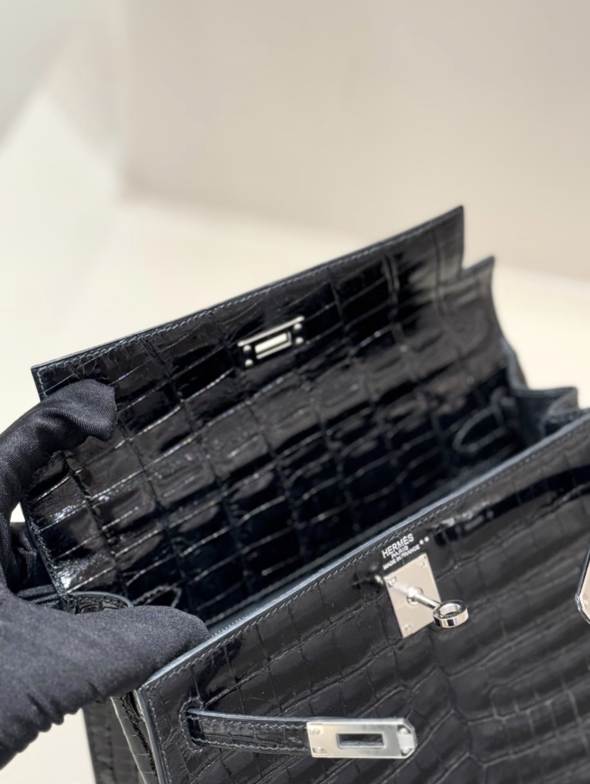 Kelly 25-28 Black silver Buckle Crocodile Leather Custom