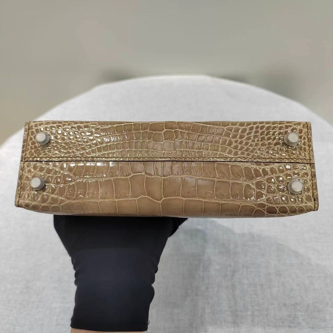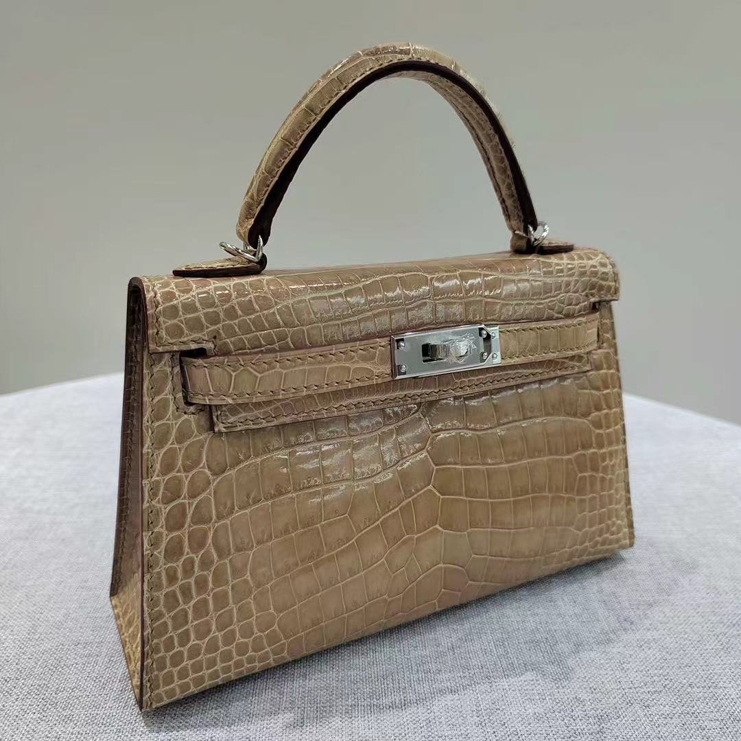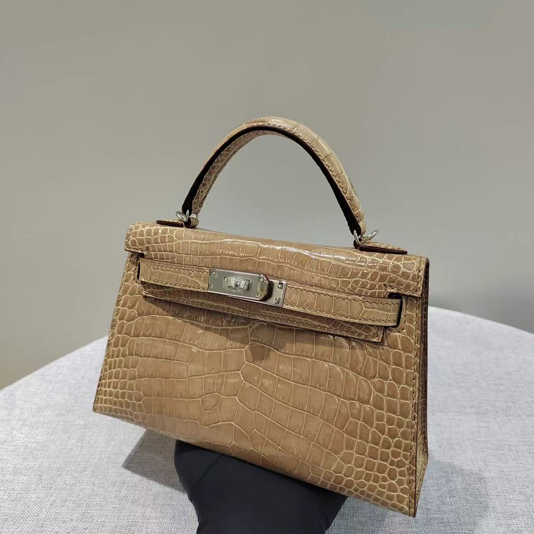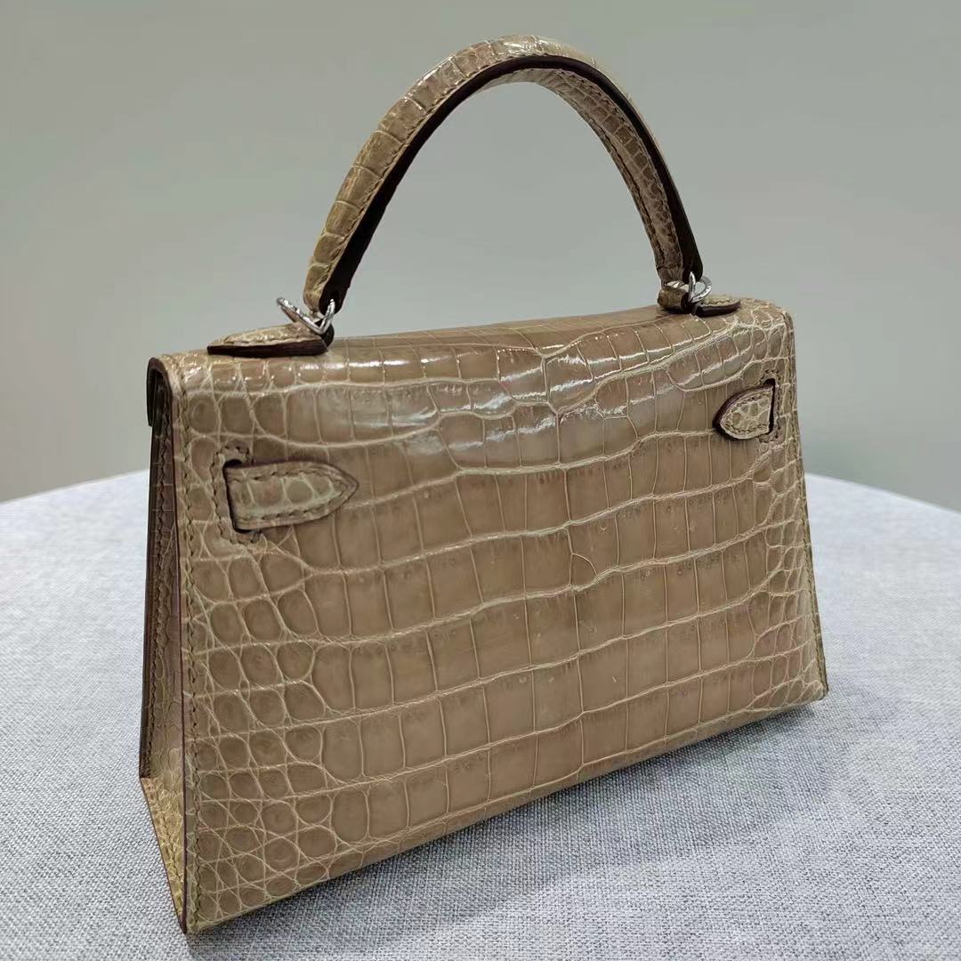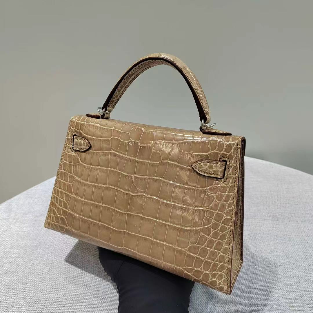 Kelly mini, milk tea color glossy crocodile leather custom-made