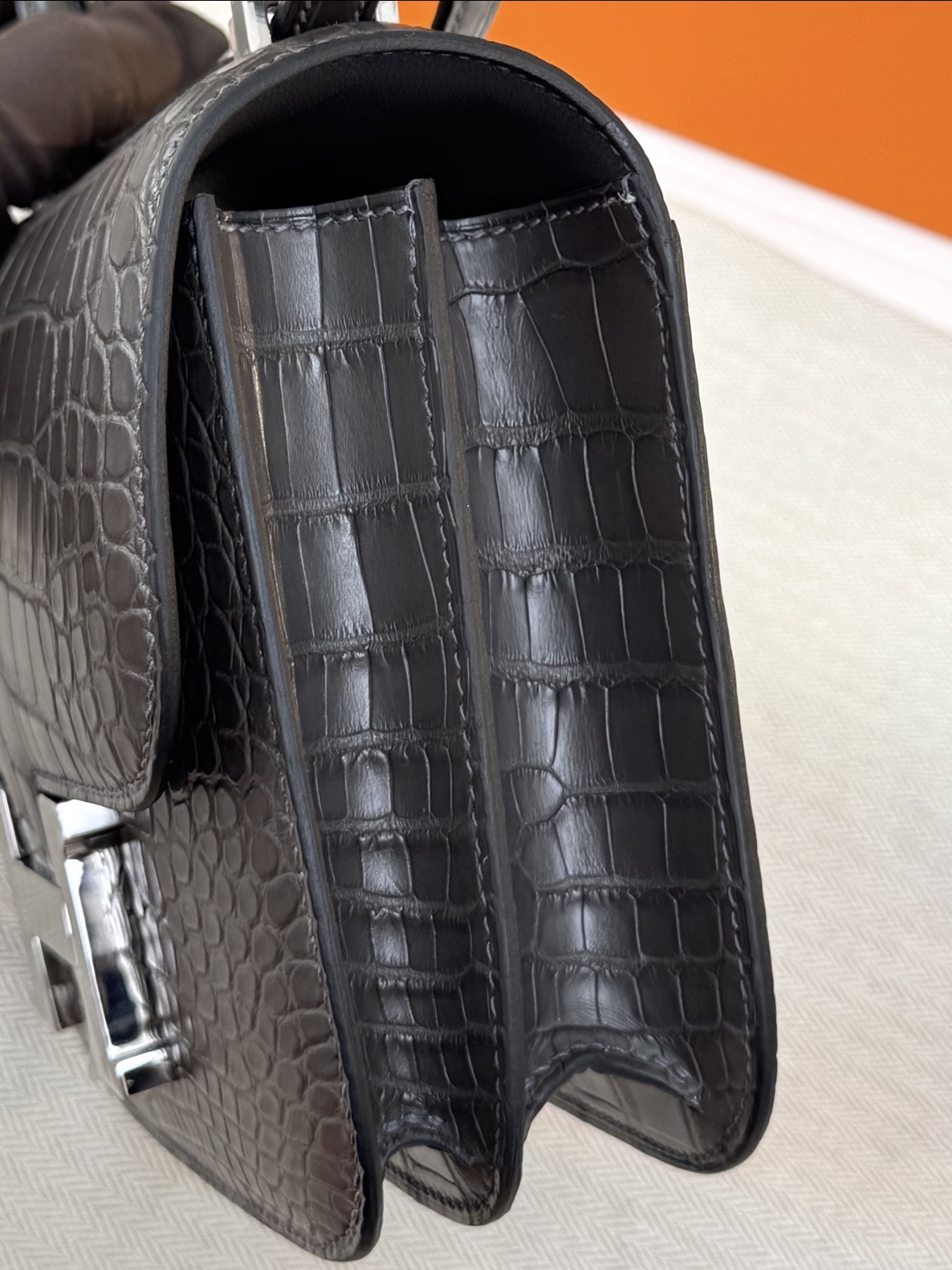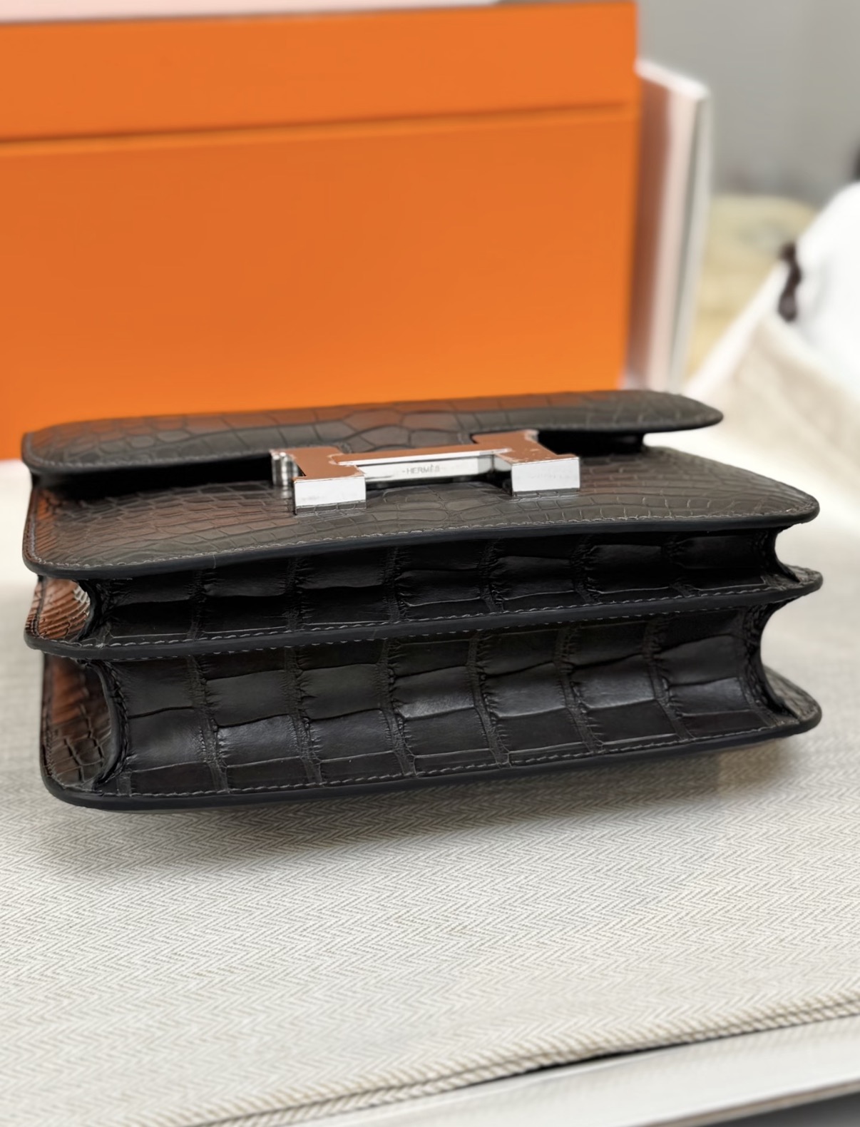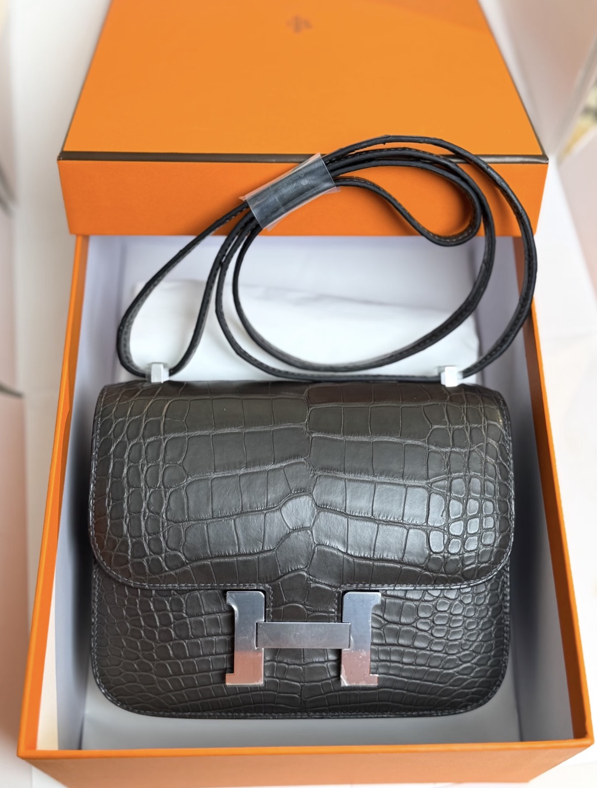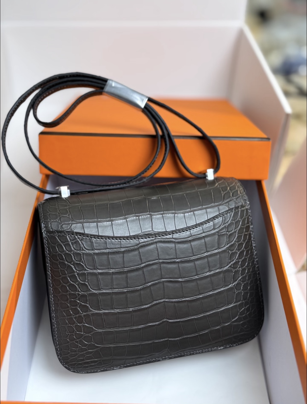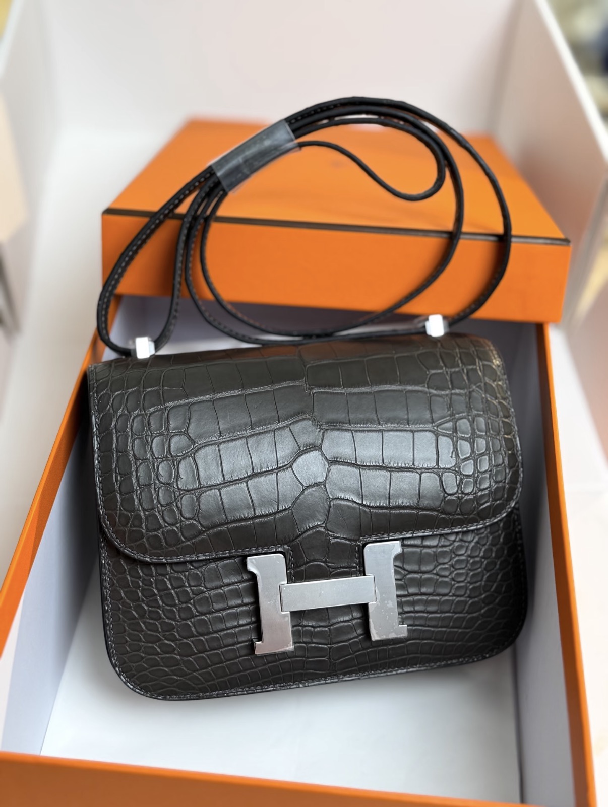 Constance Black silver hardware matte crocodile leather