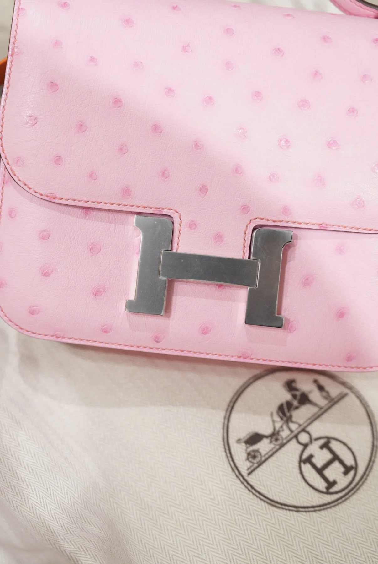 Constance Bubble Pink Silver Hardware Ostrich Leather Customization