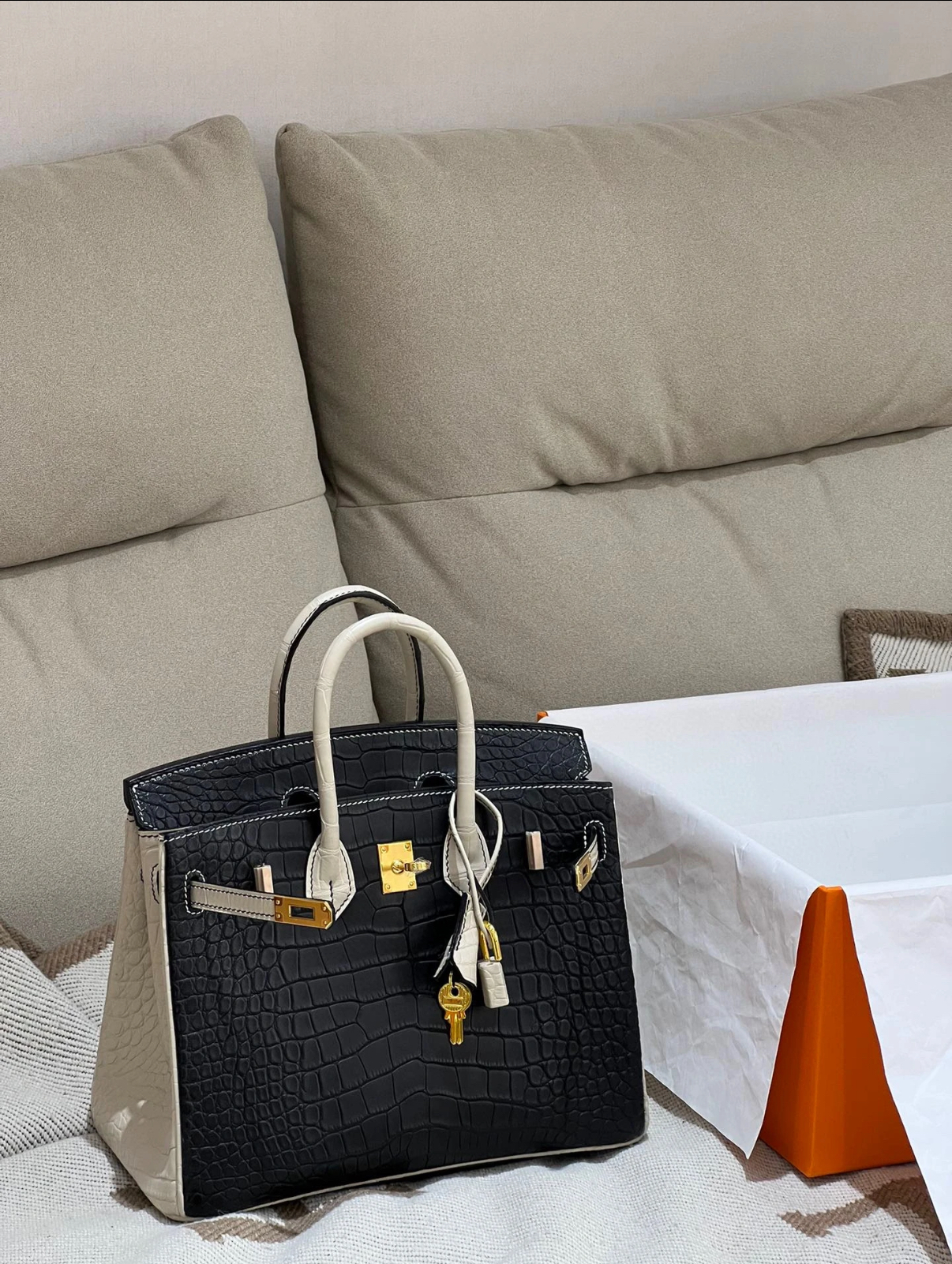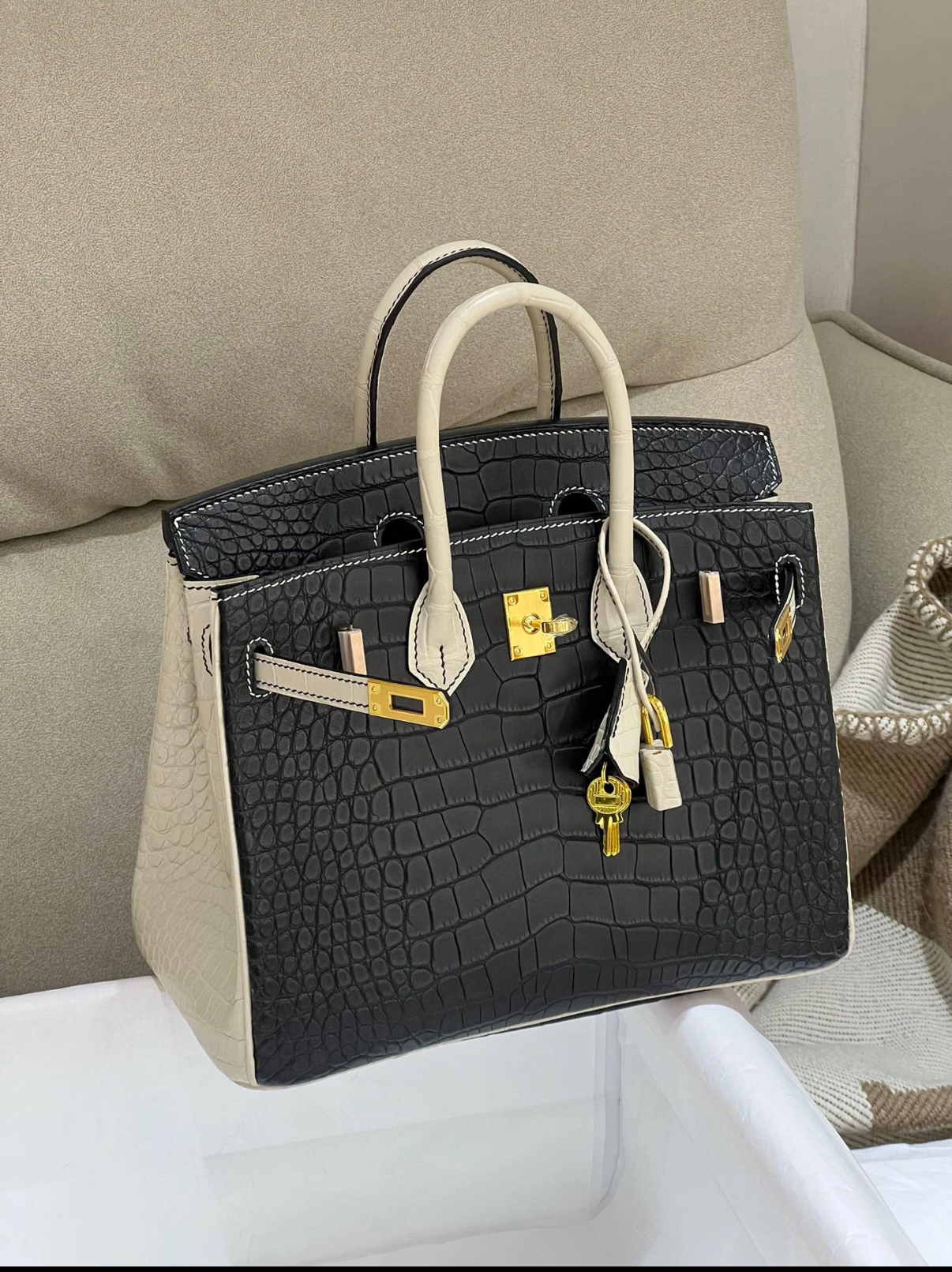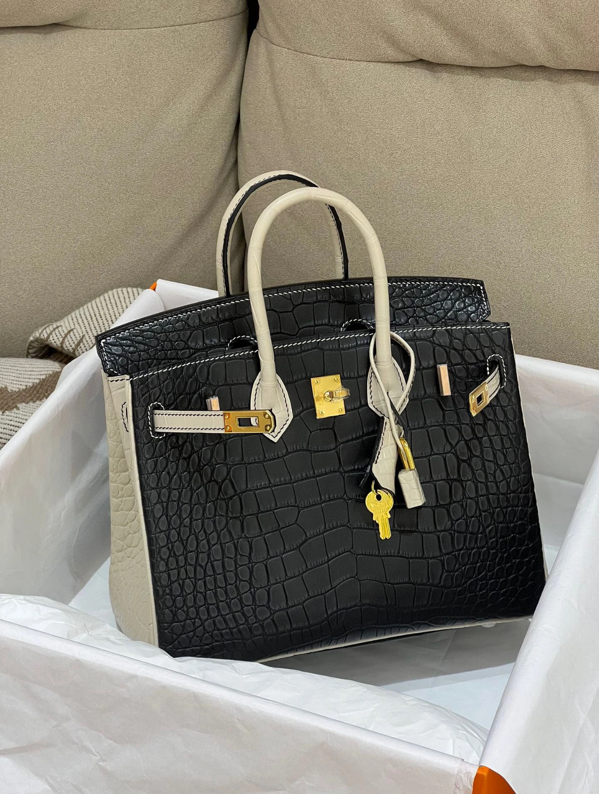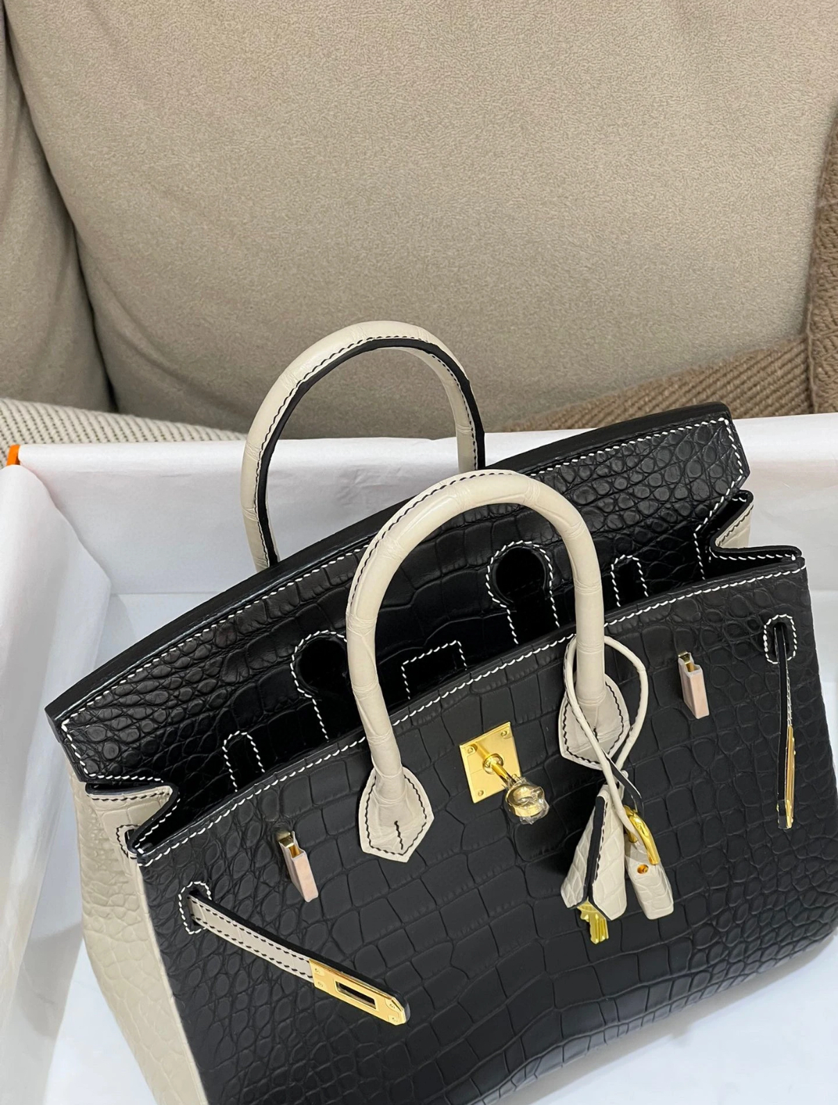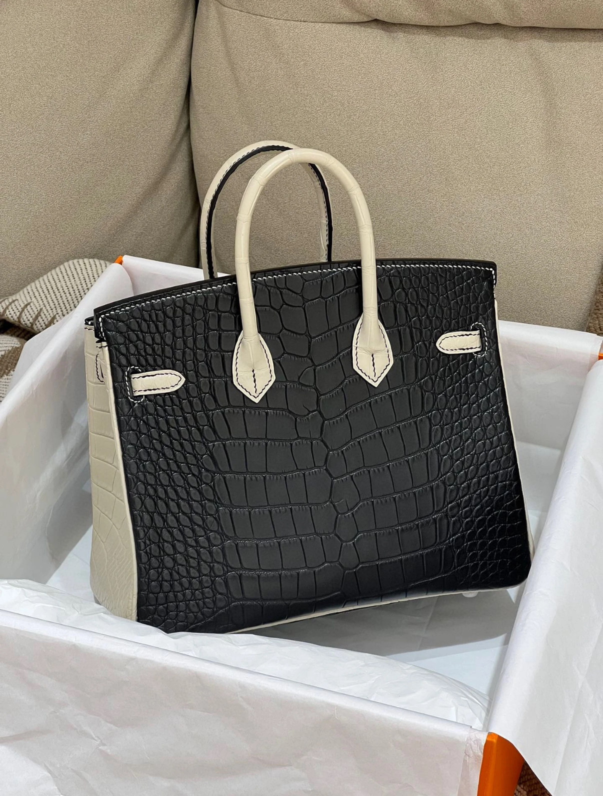 Birkin 25 black white crocodile leather Customized