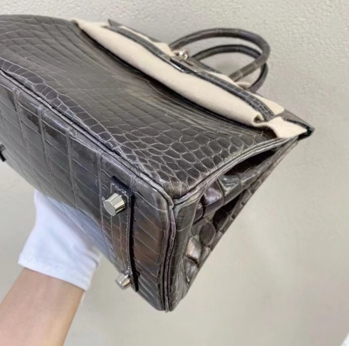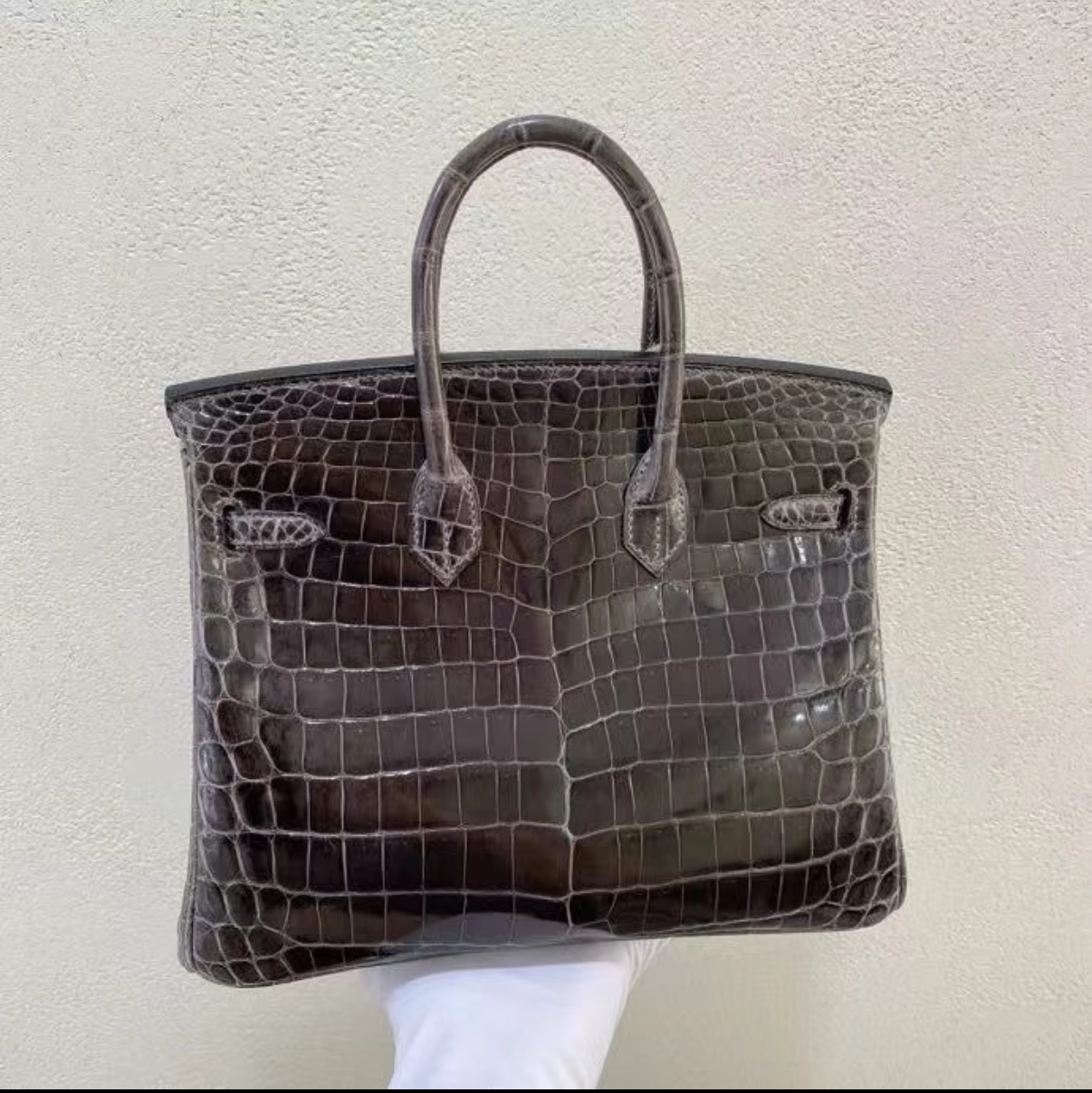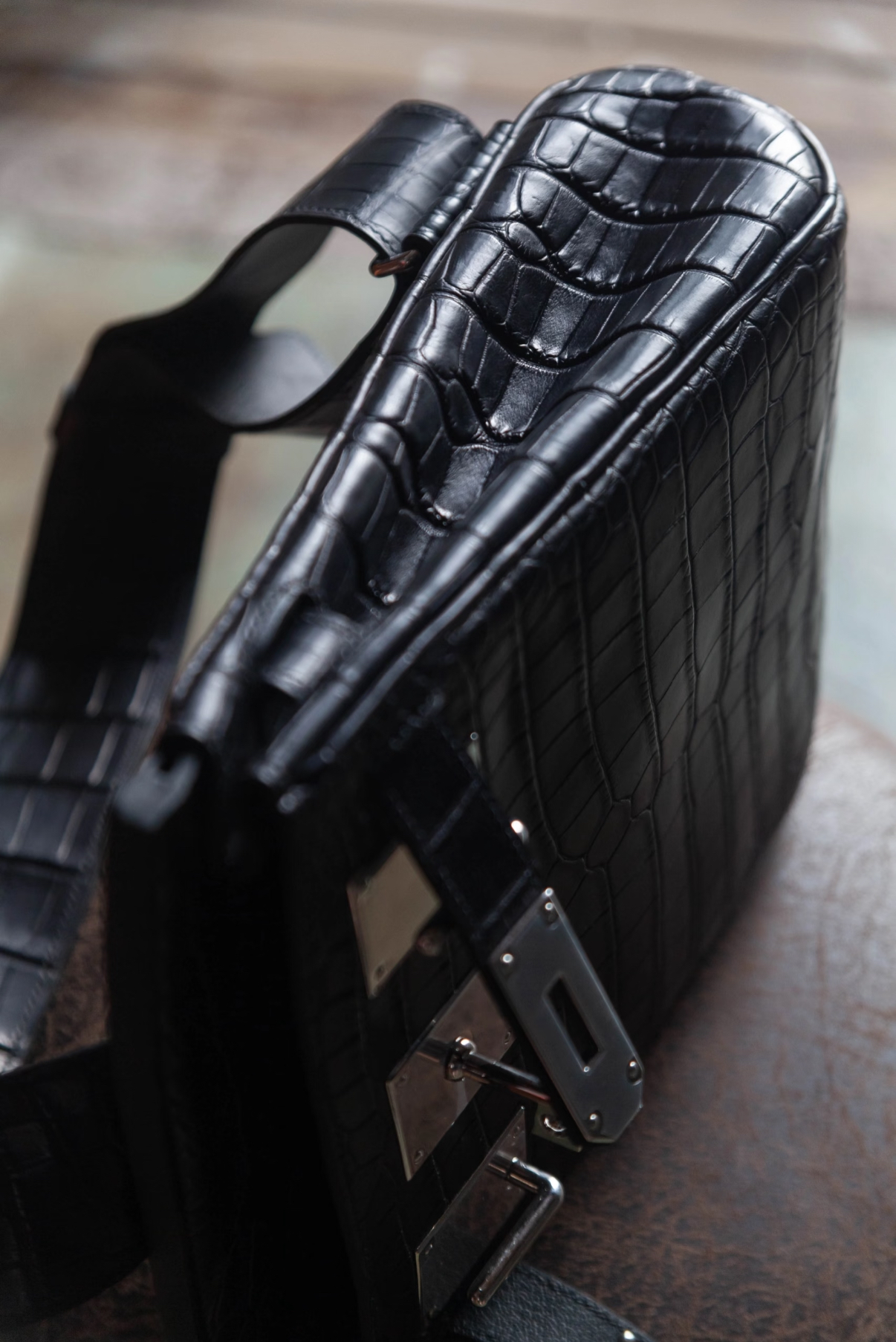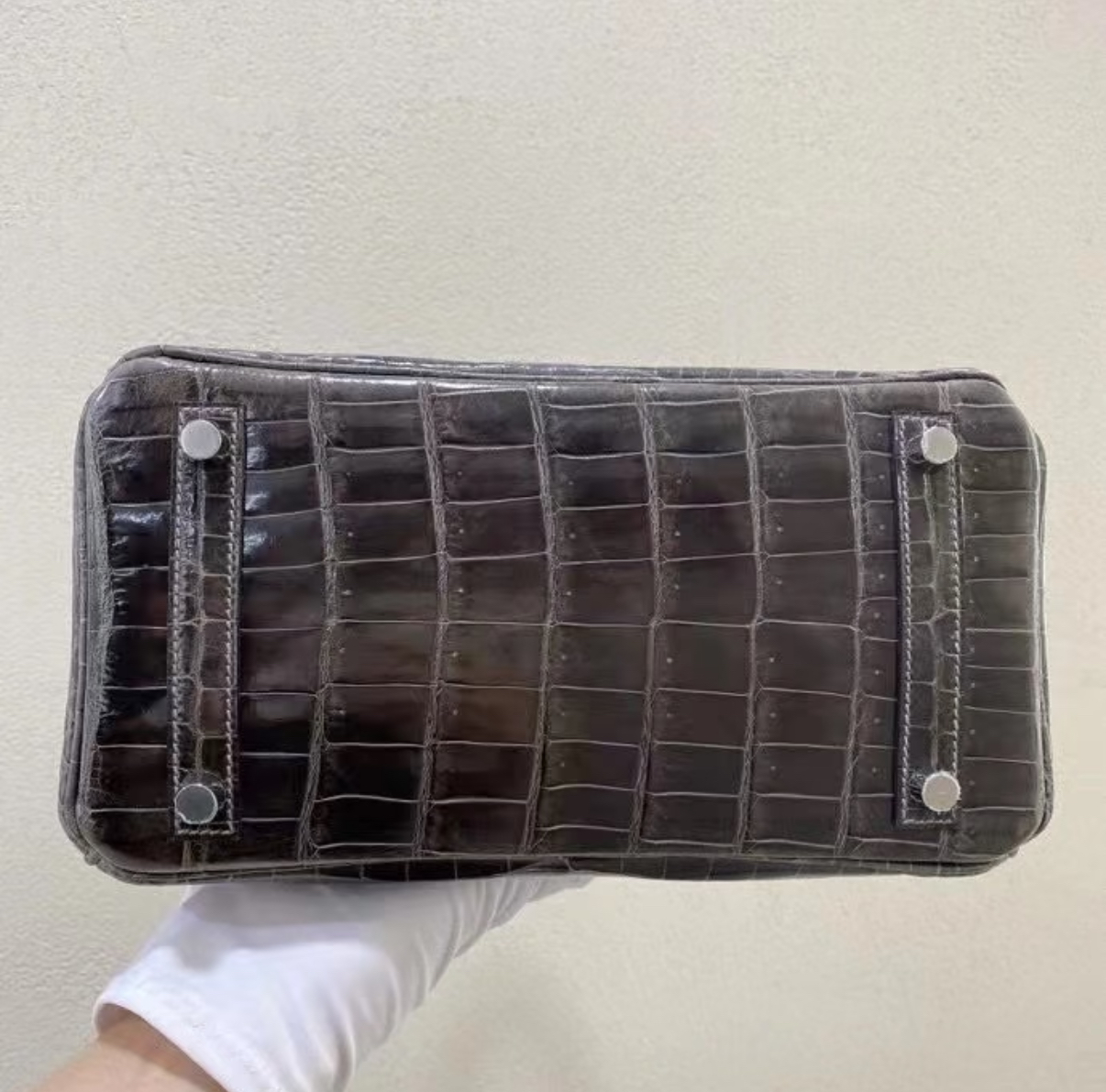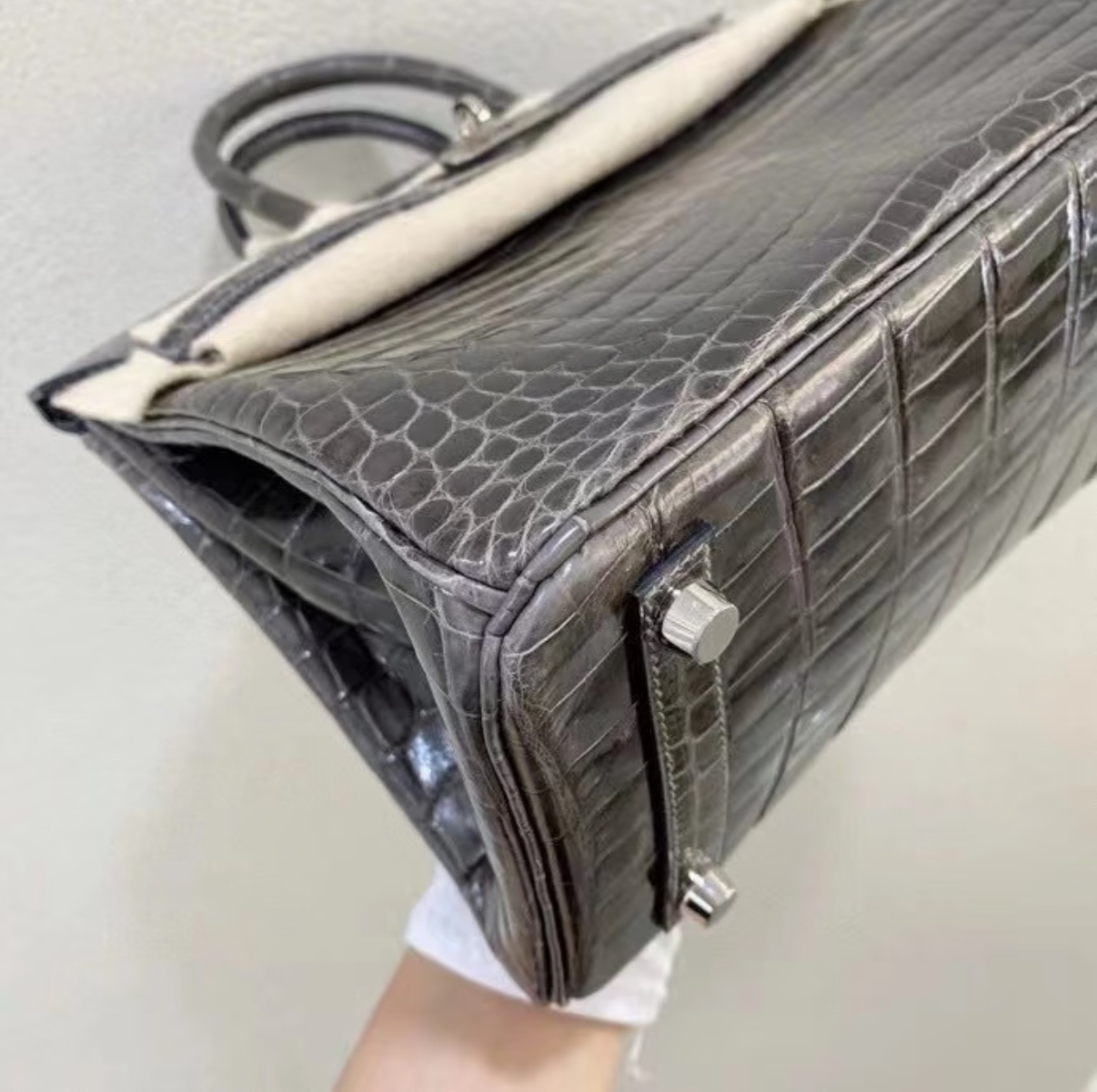 Brikin 25-30 graphite grey silver buckle custom crocodile leather