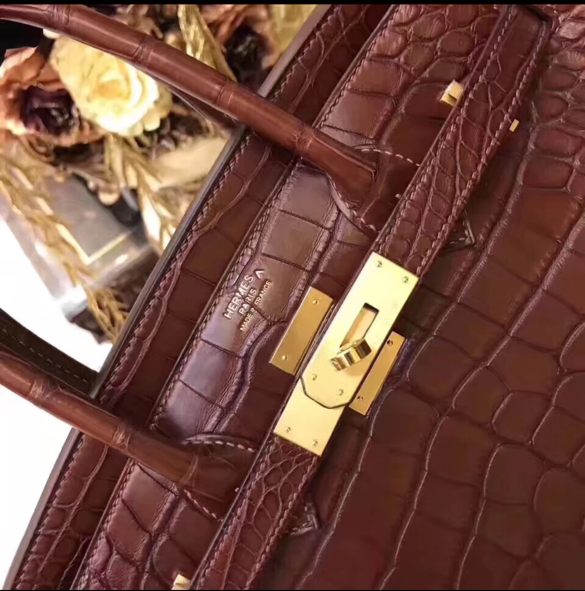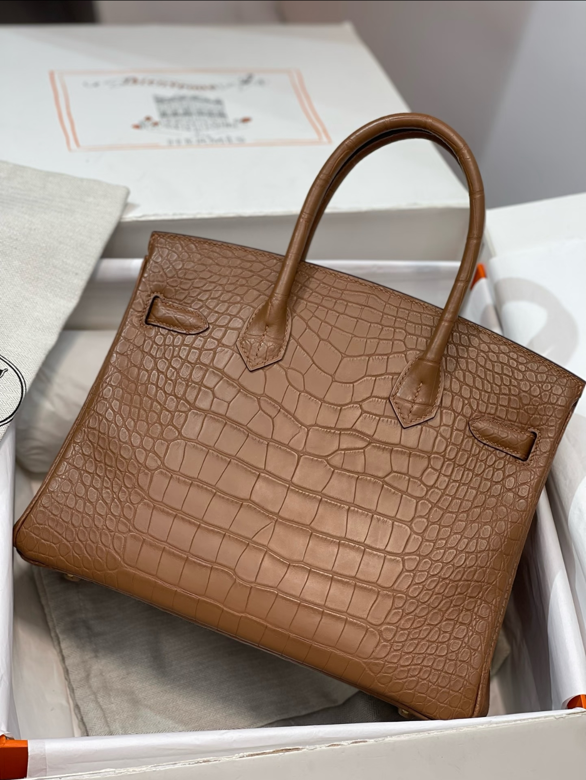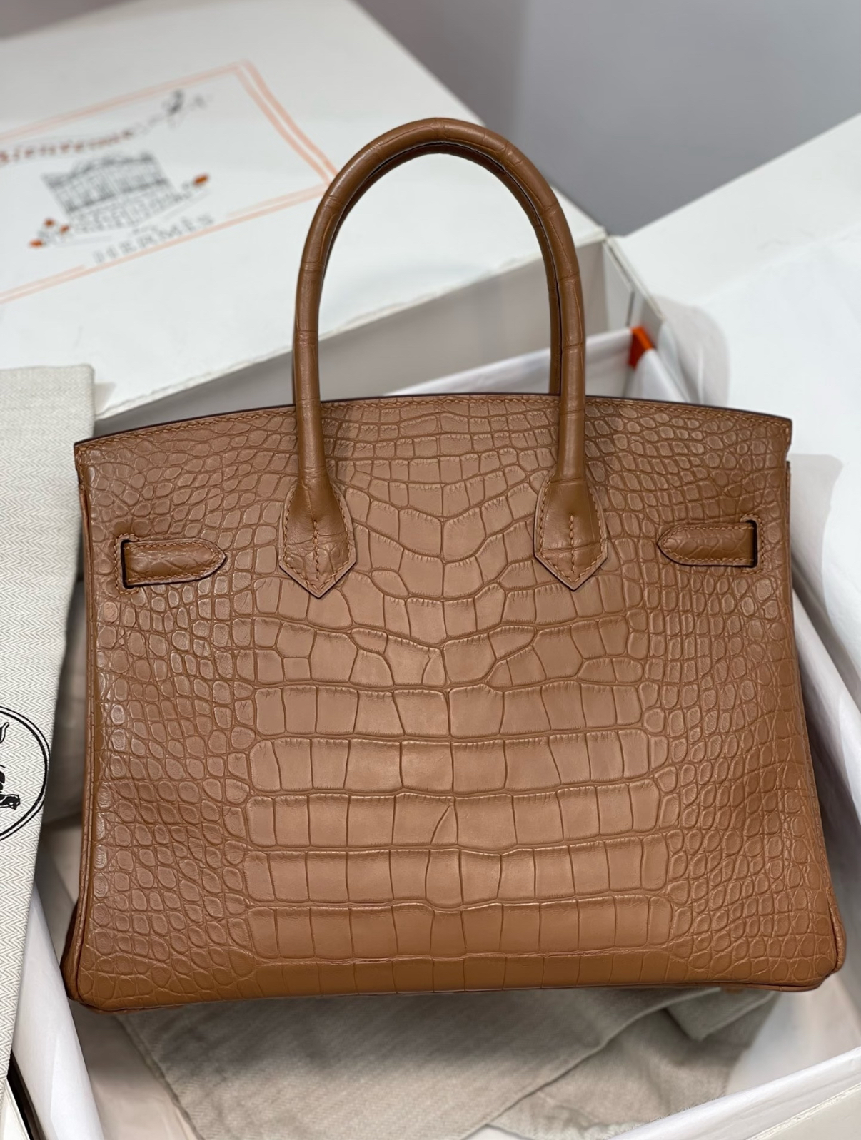 Birkin 25-30 Golden Brown Matte American crocodile leather