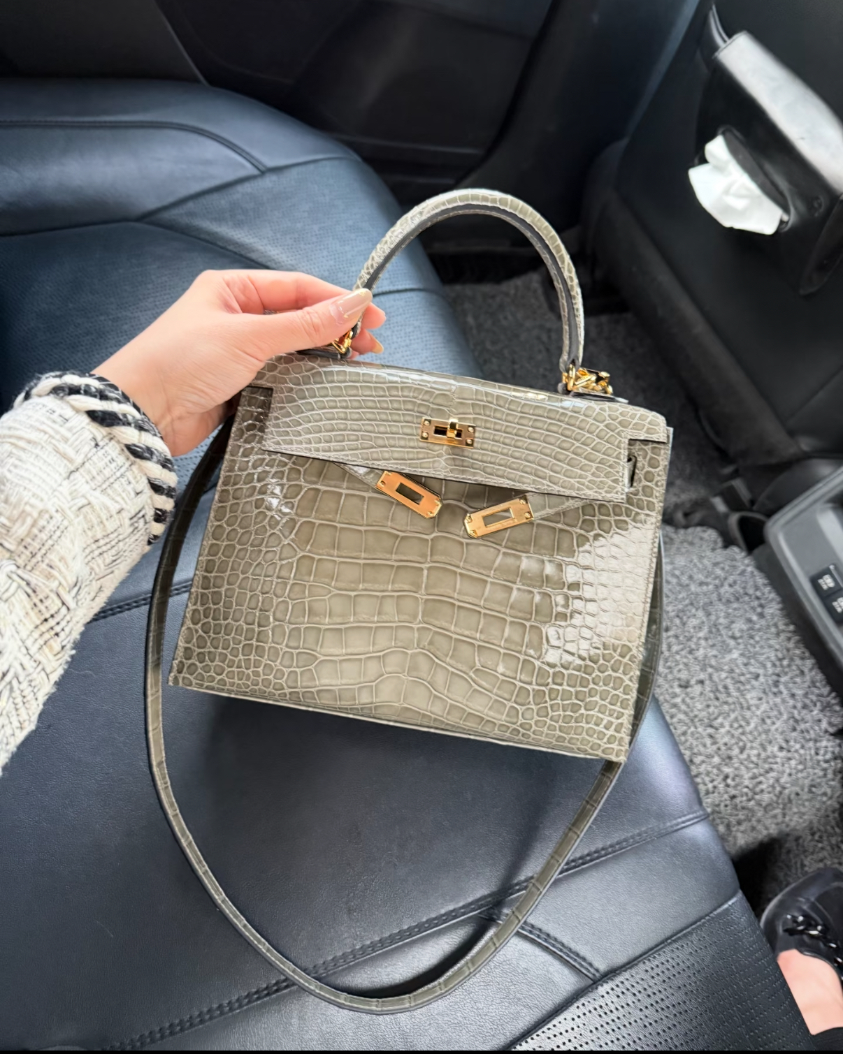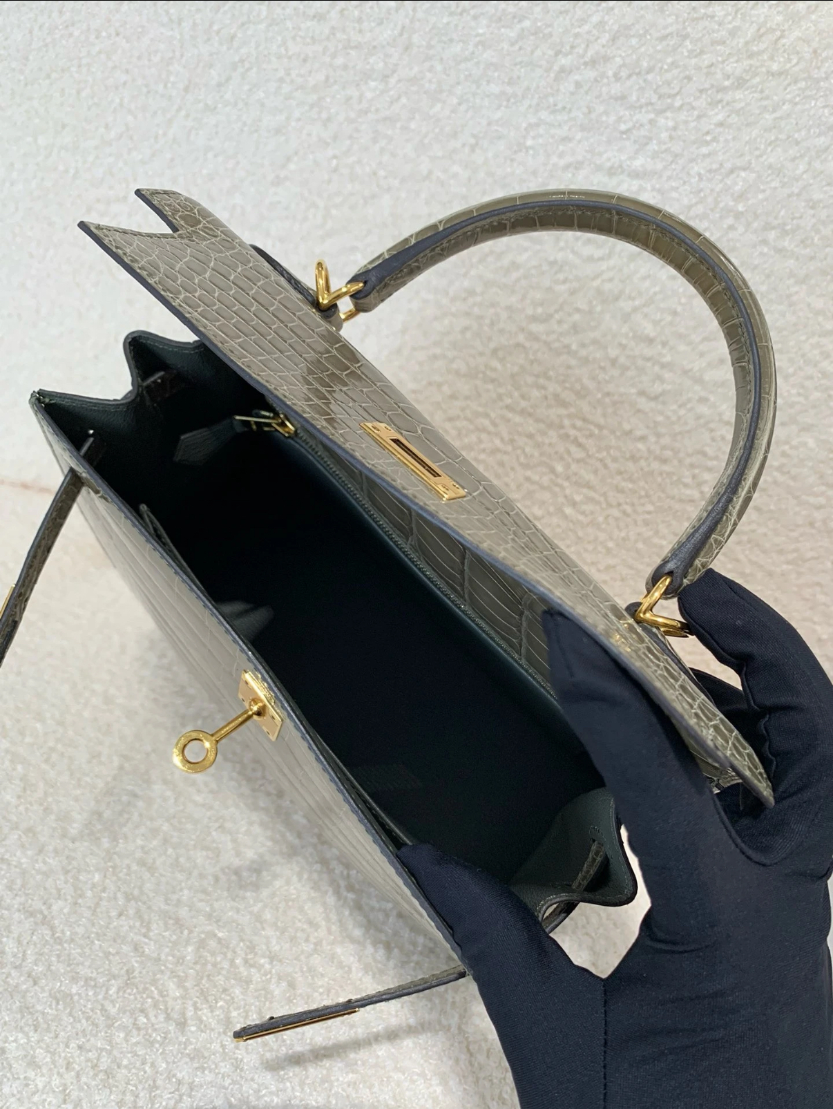 Kelly 25-28 turtledove grey crocodile leather