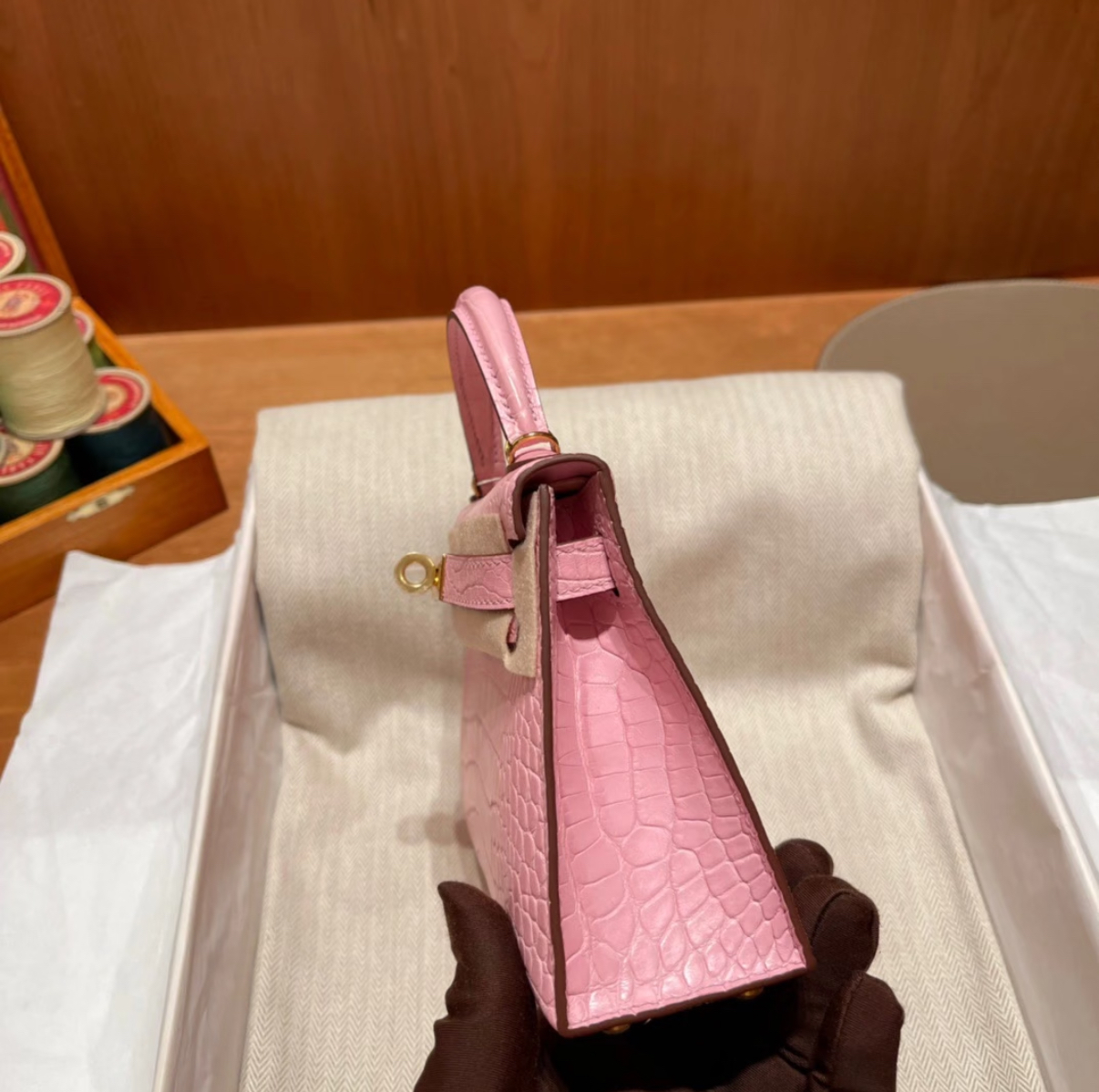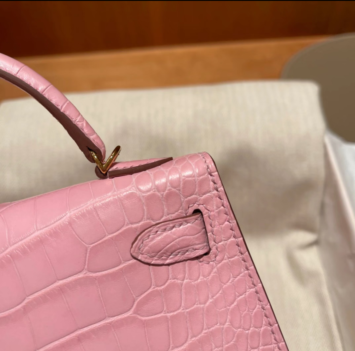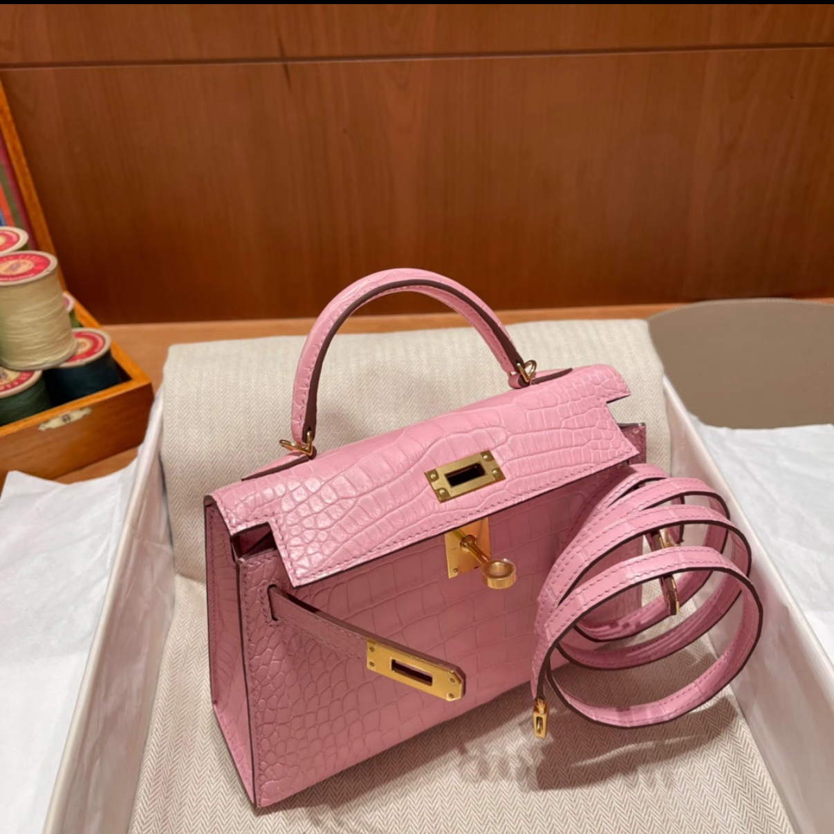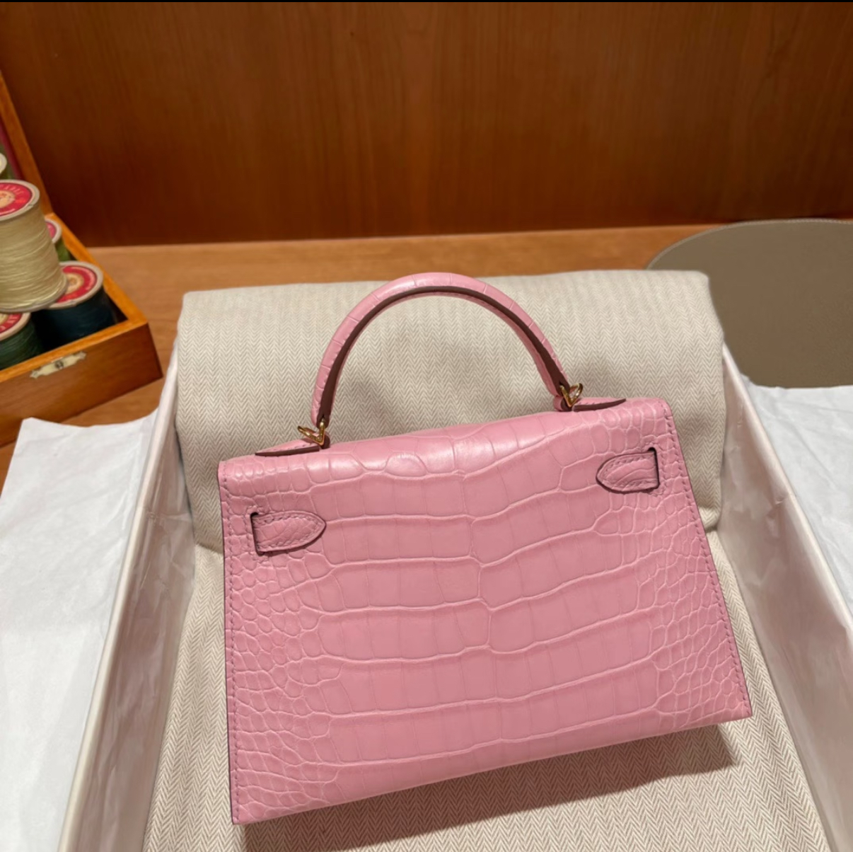 Kell mini 2 light pink Matte crocodile leather custom
