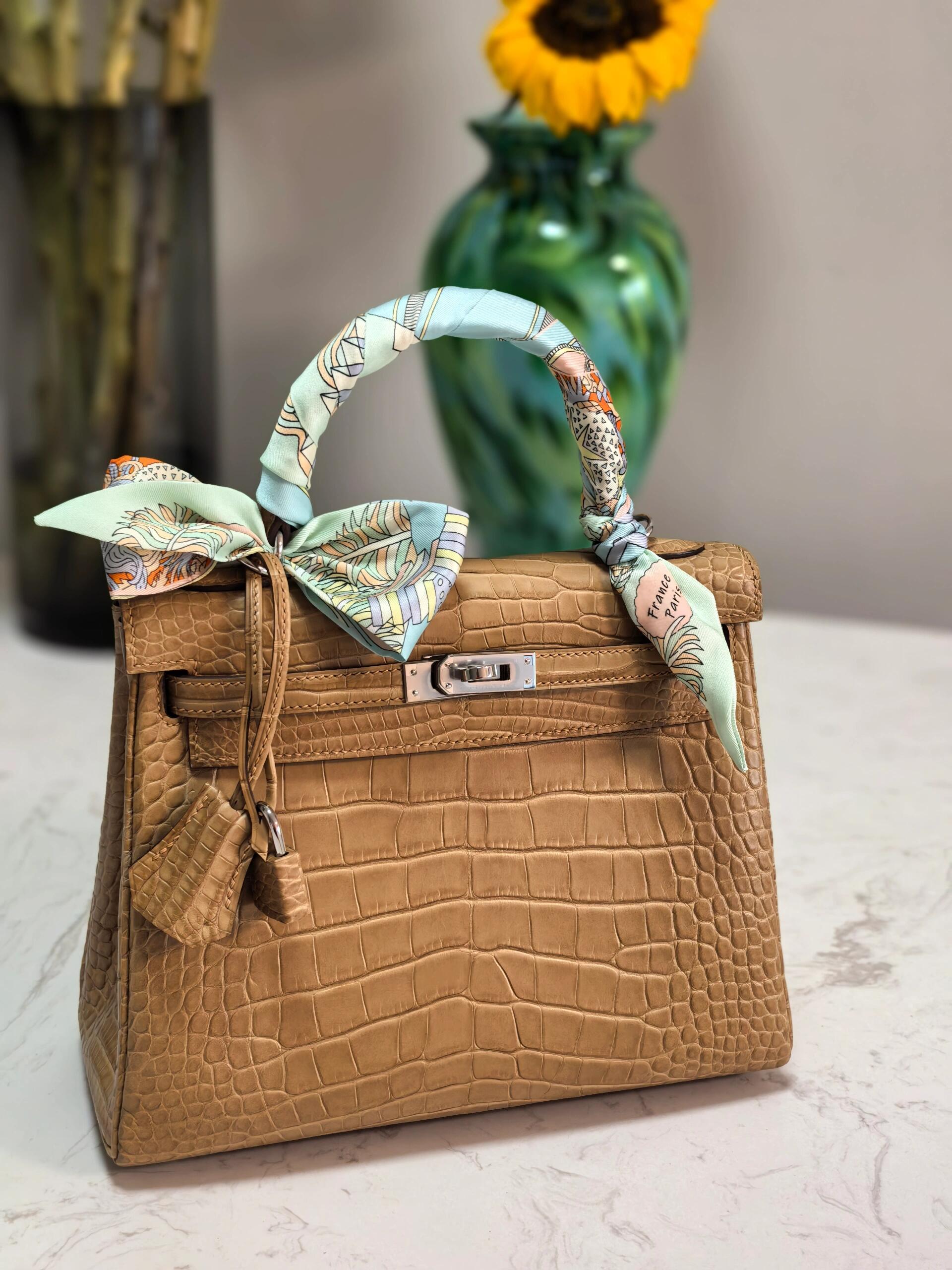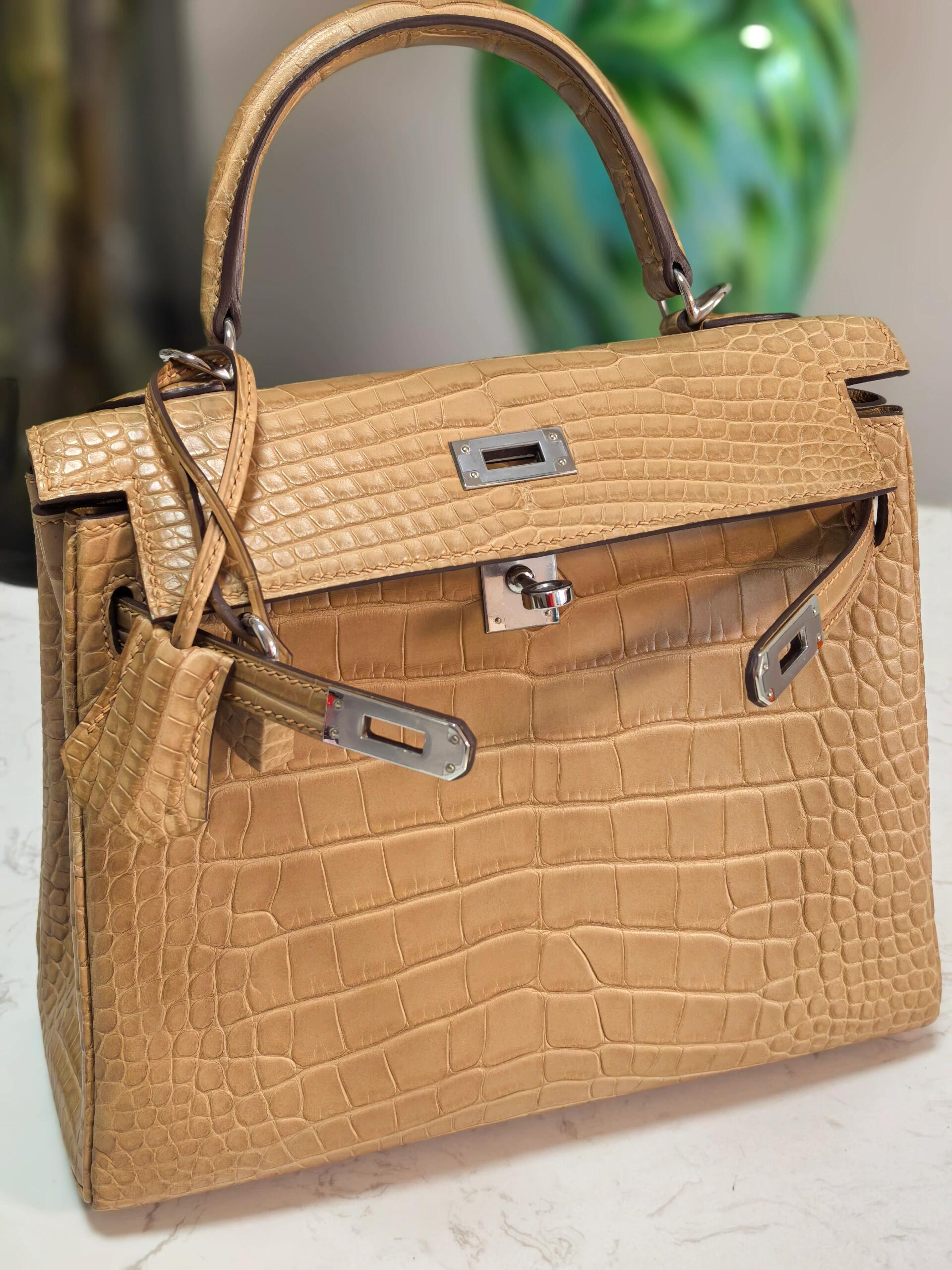 Kelly25-30 milk tea color silver buckle American crocodile leather