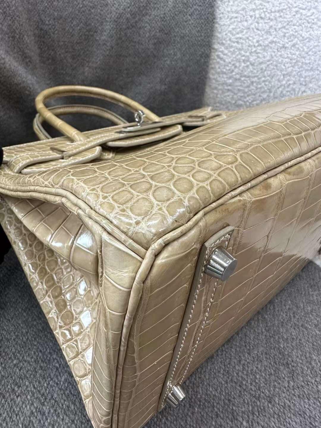 beige silver buckle shiny inverted V crocodile birkin 25-30CM