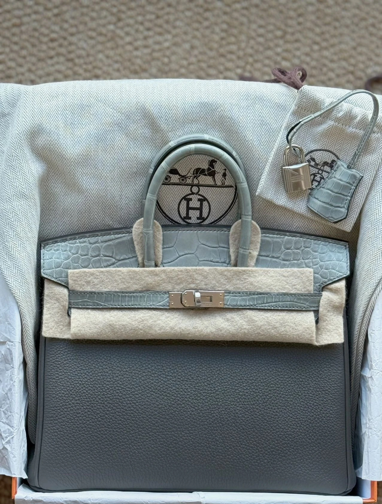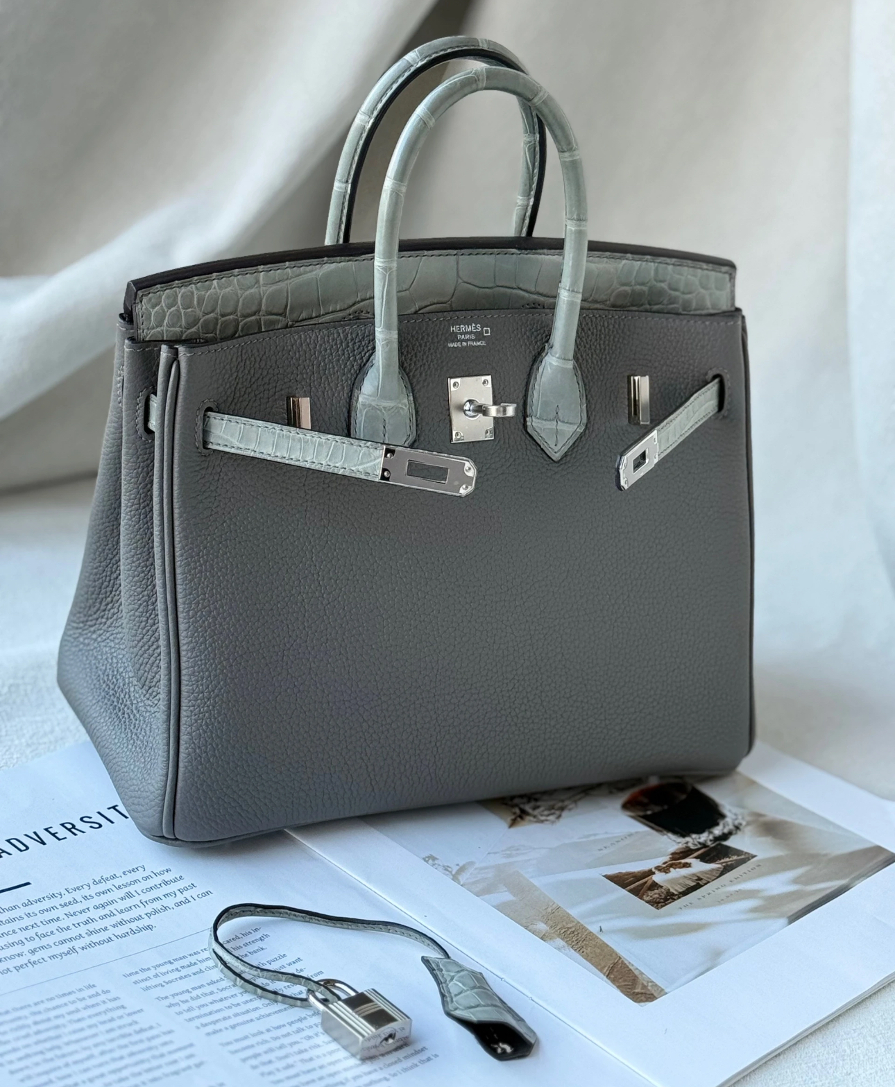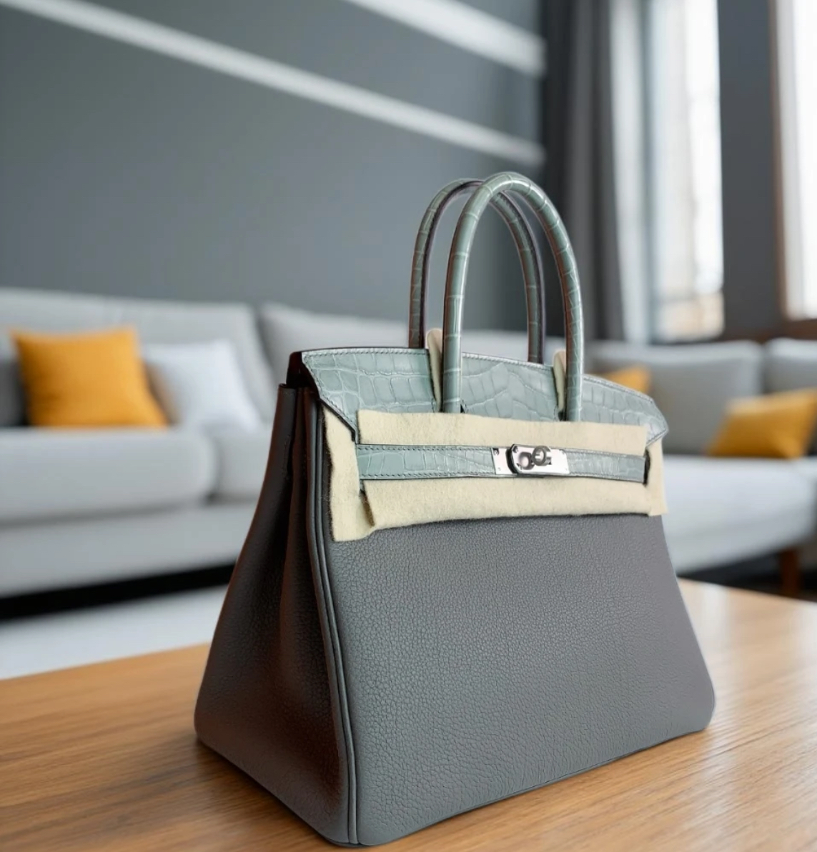 Birkin Bag 25-35 TOGO Grey Crocodile Leather Customized