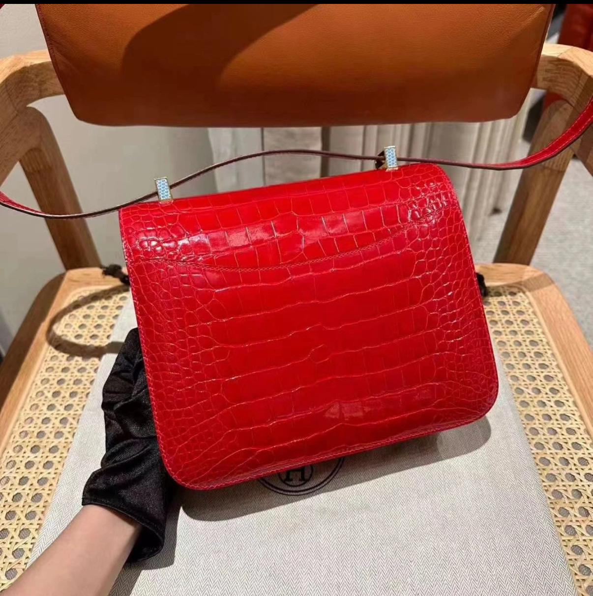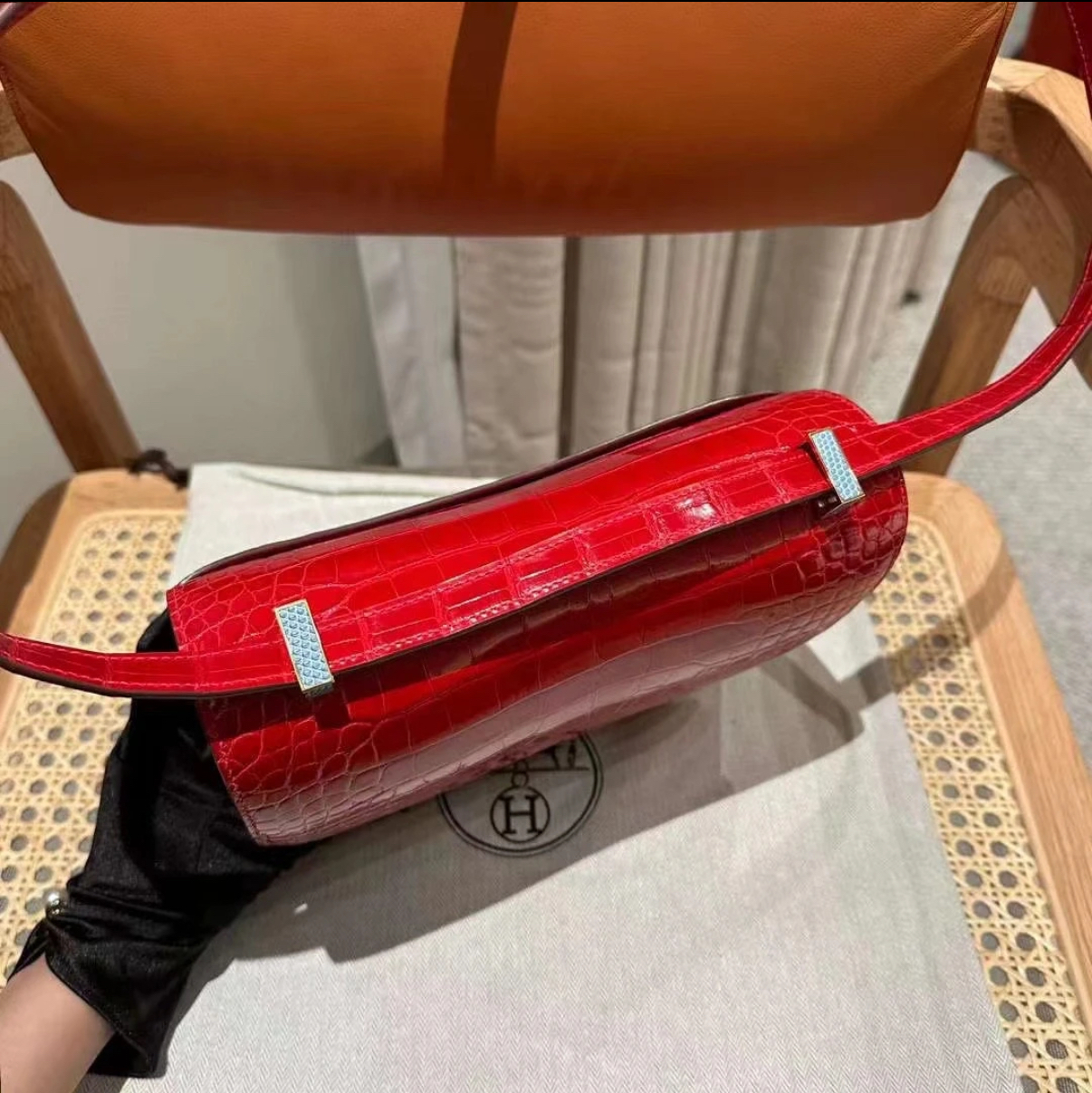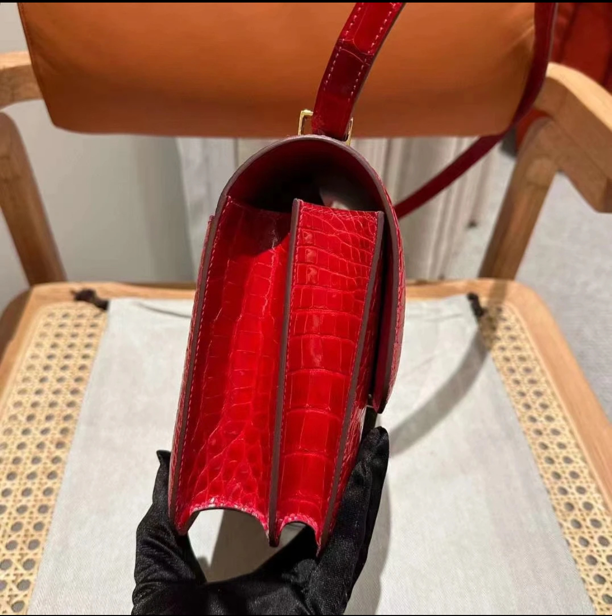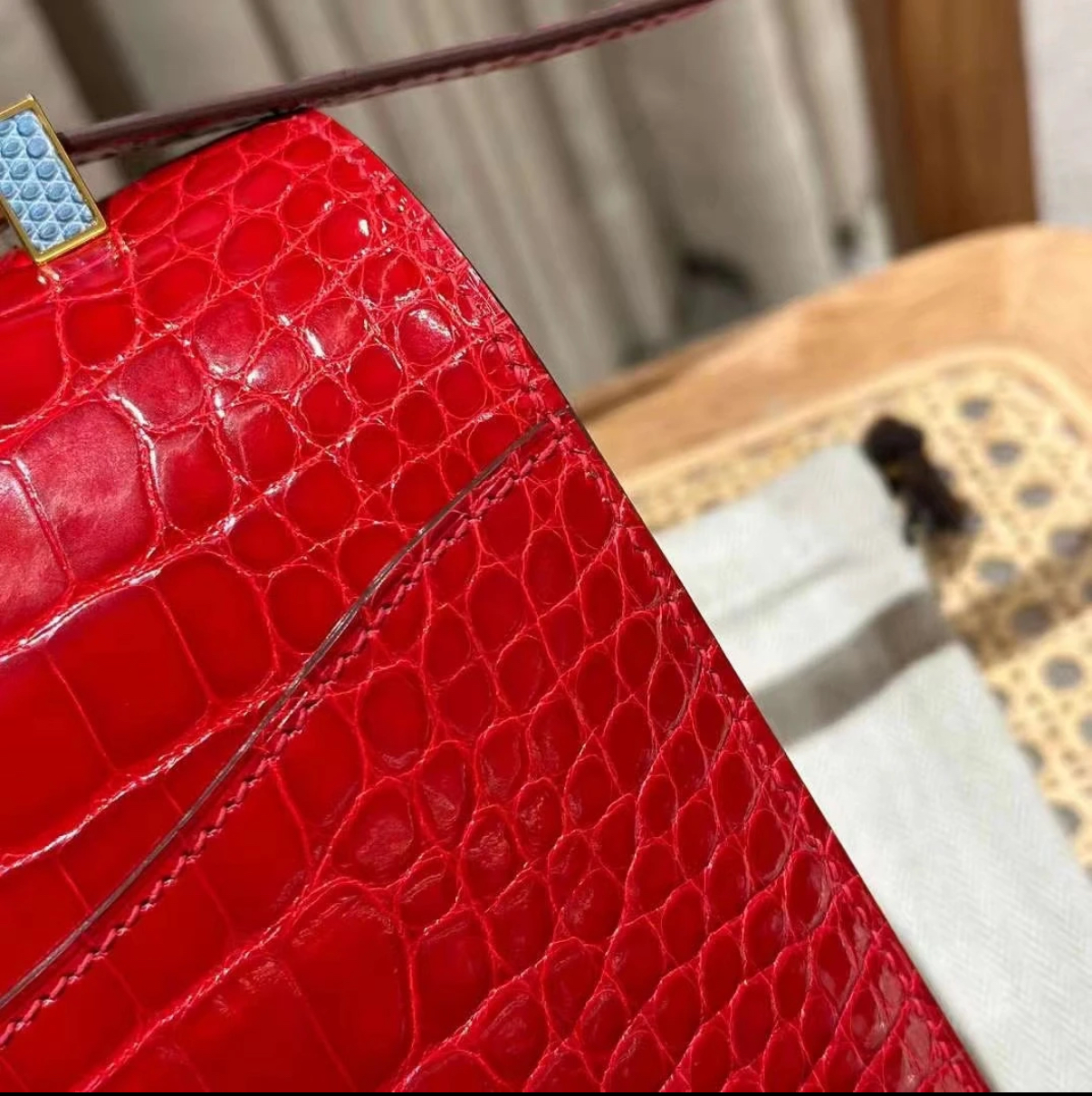 Constance 19 gold buckle Ferrari red American alligator leather pure handmade custom