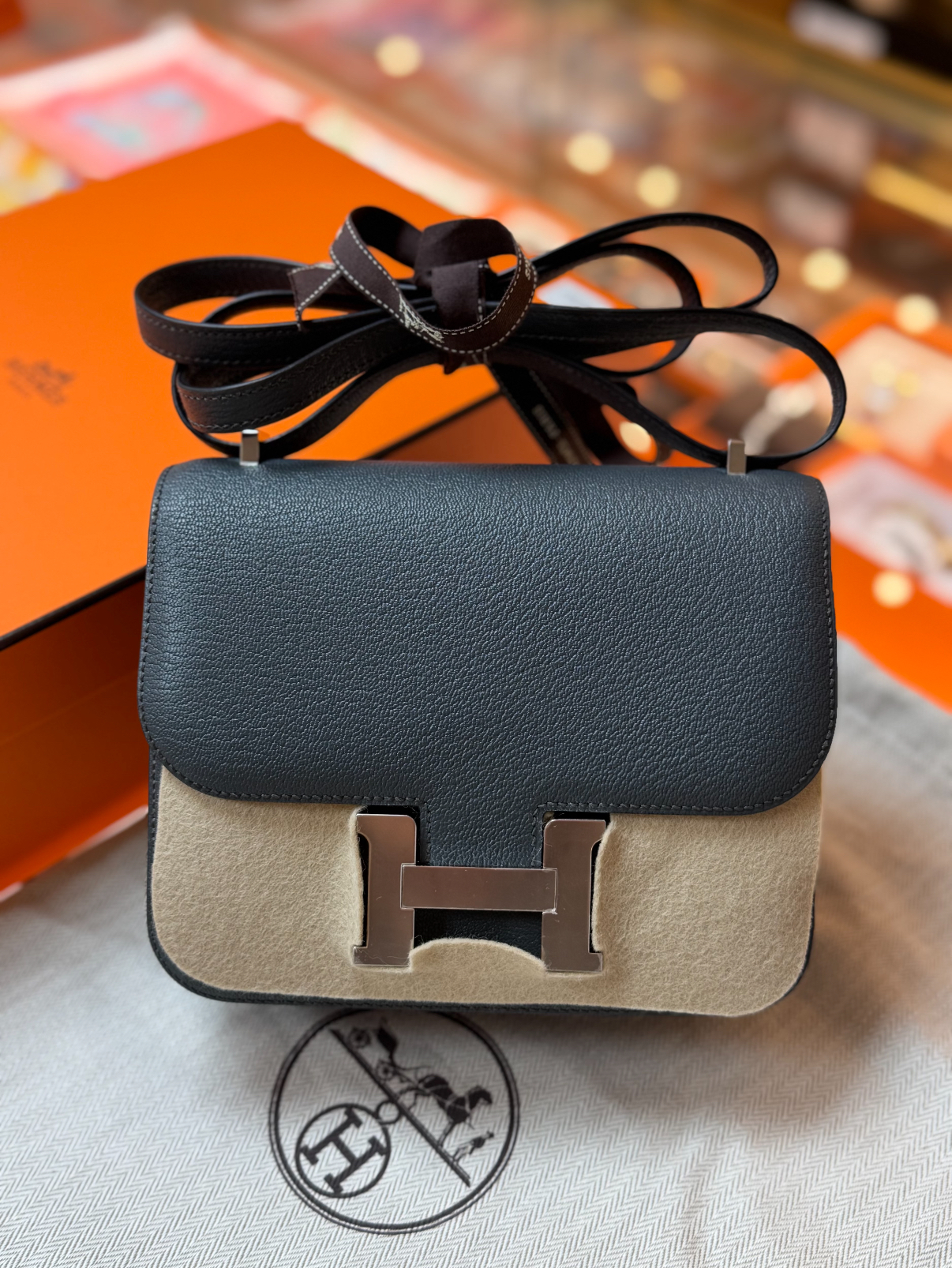 Handcrafted by masters Mini constance CK3T Carbon grey goatskin with silver buckle and K engraving