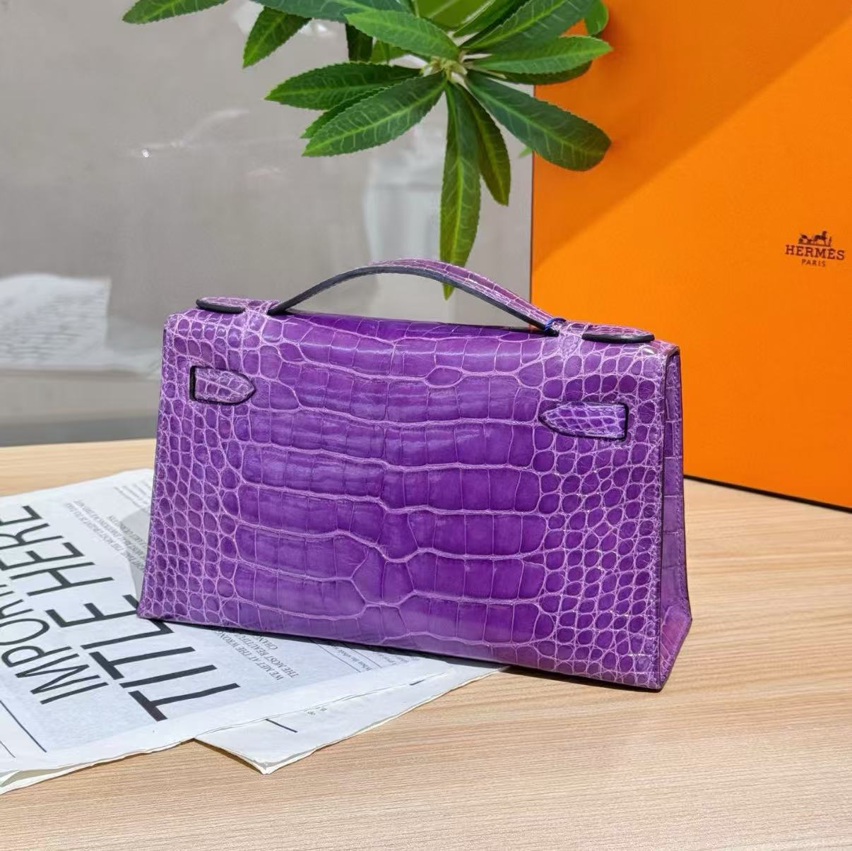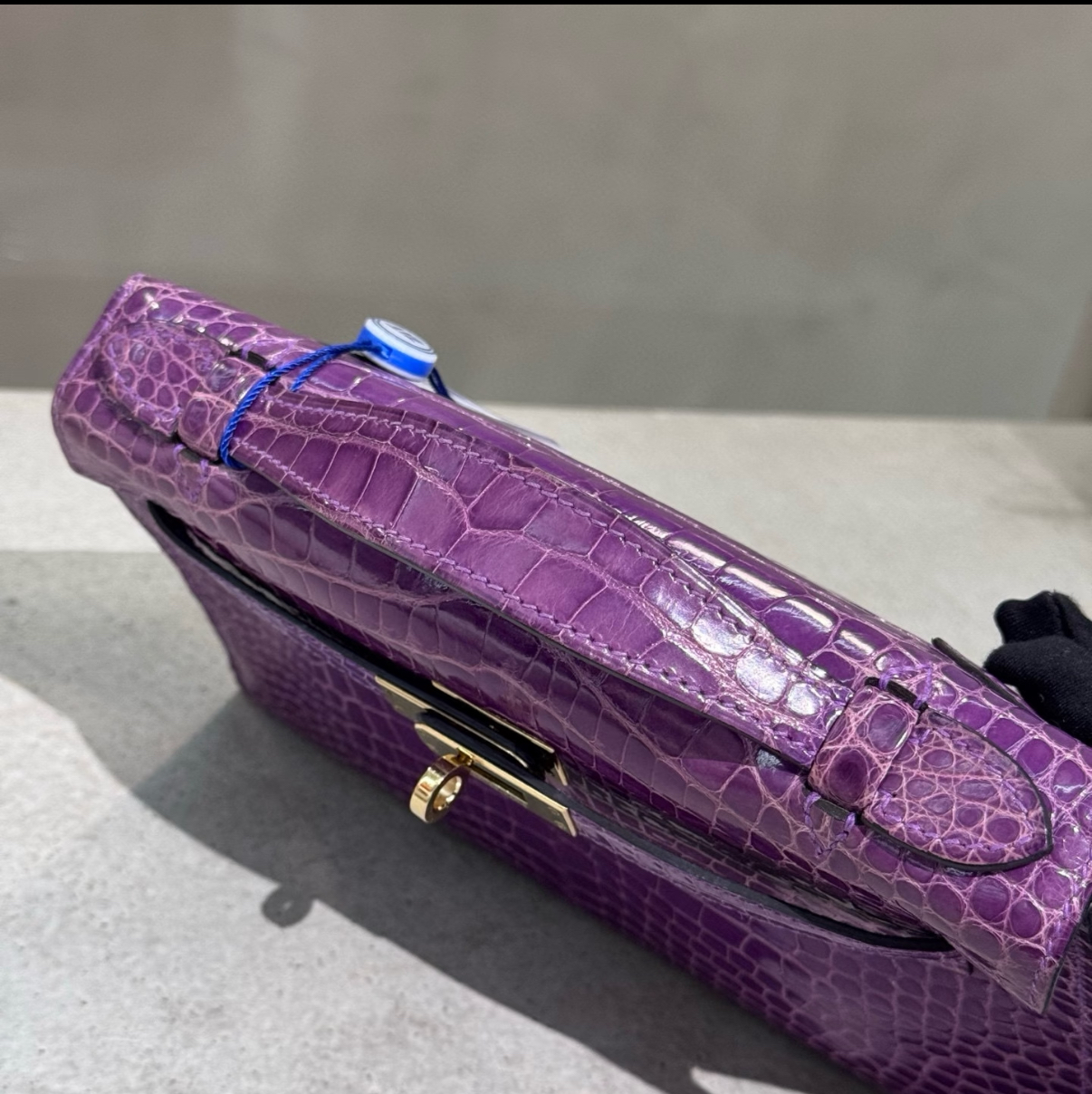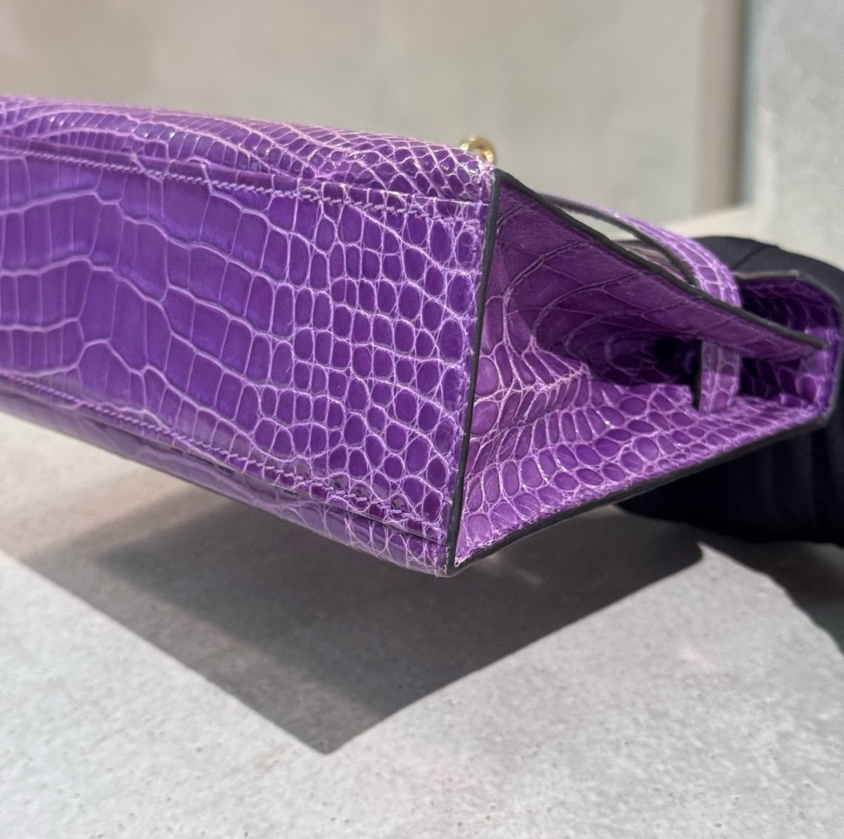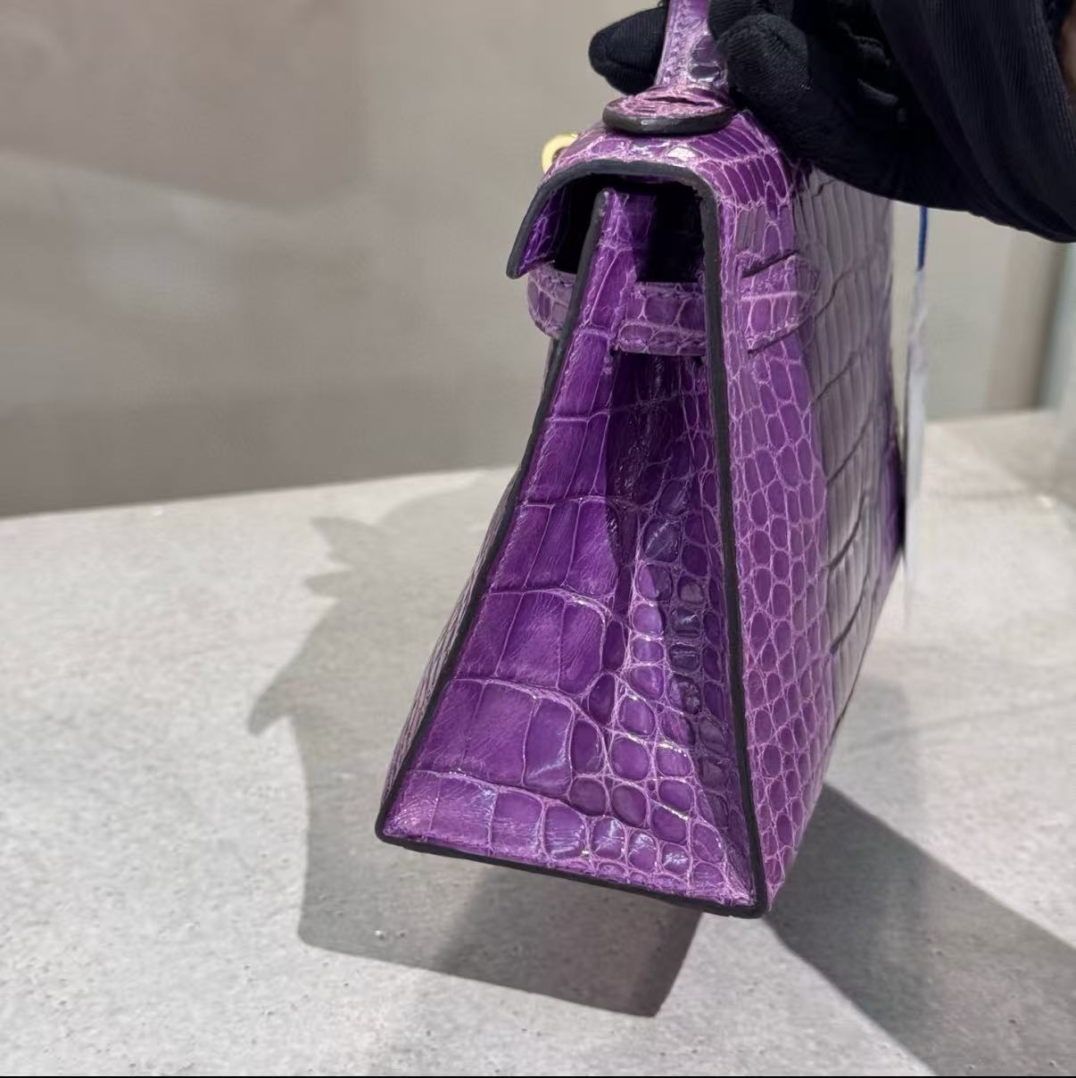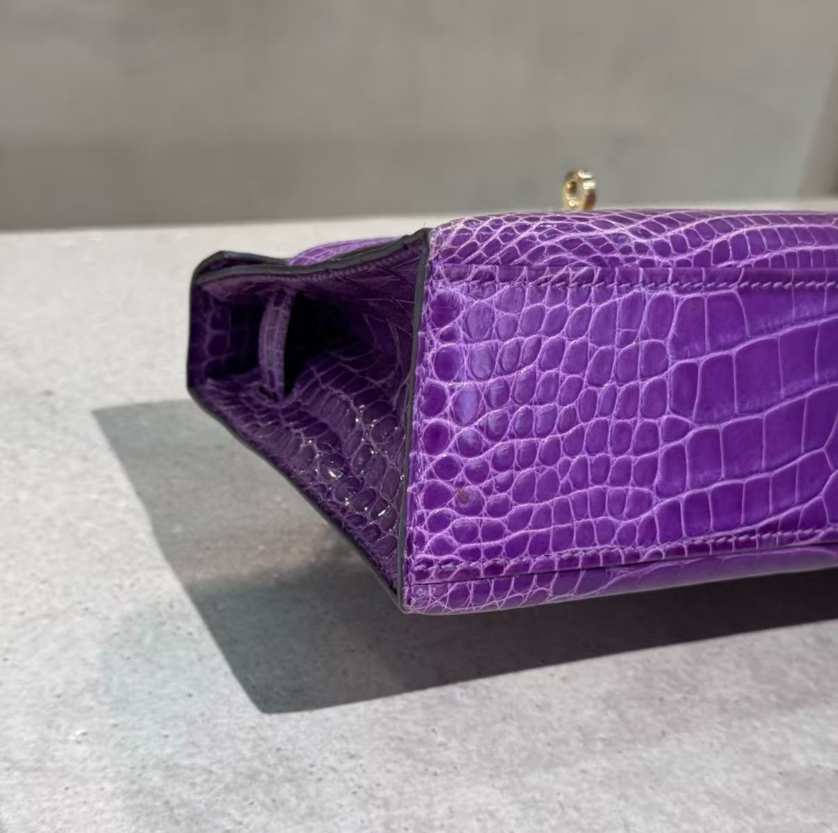mini Kelly 1 generation purple shiny crocodile leather with gold buckle