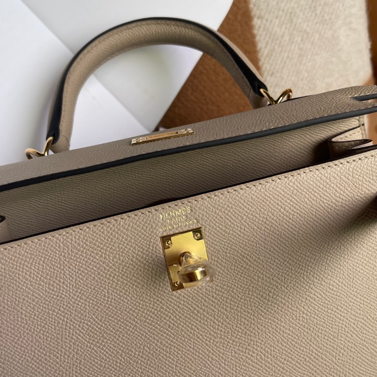 Kelly mini 2 19 crema EPSOM fibbia oro personalizzata