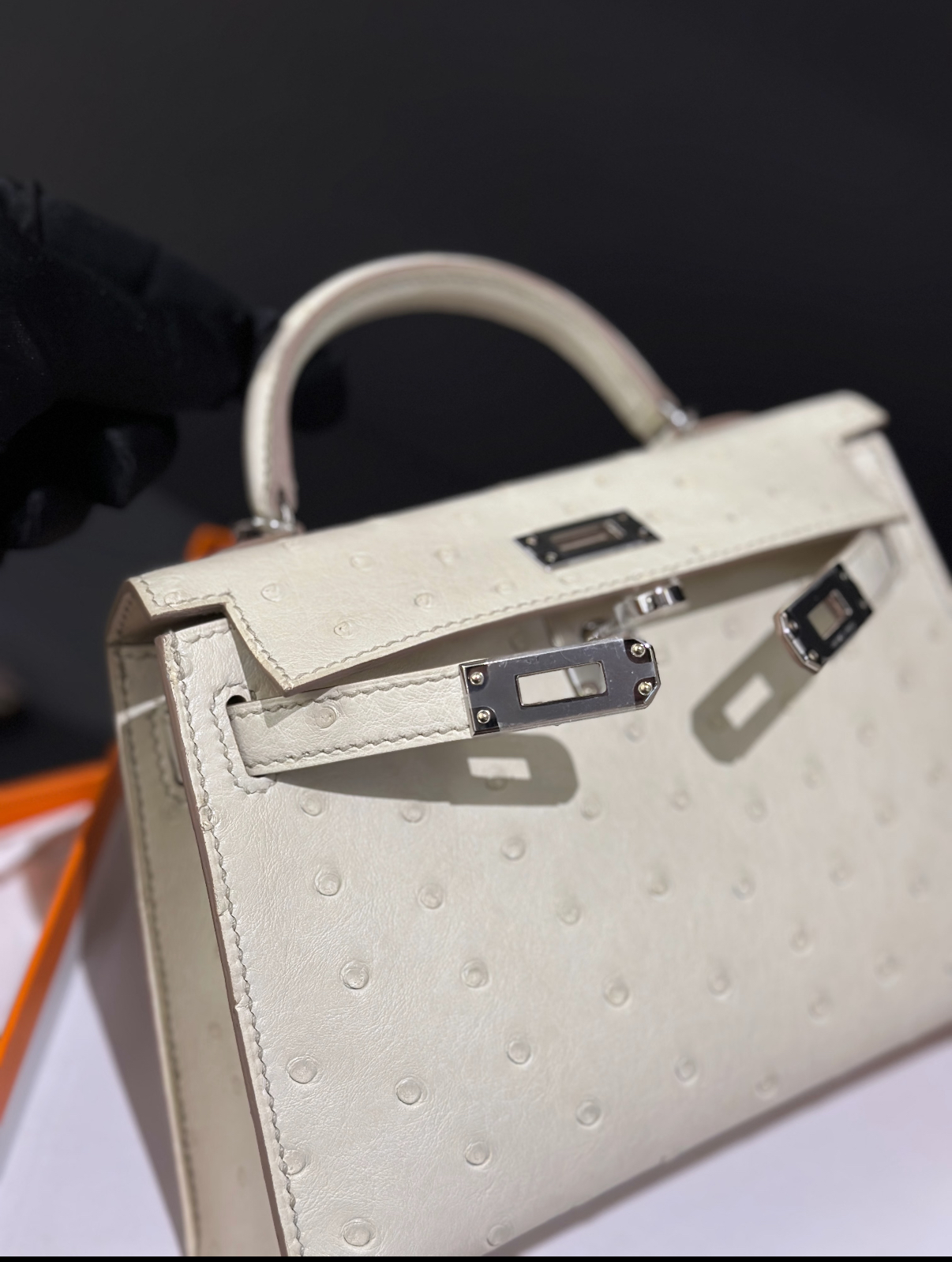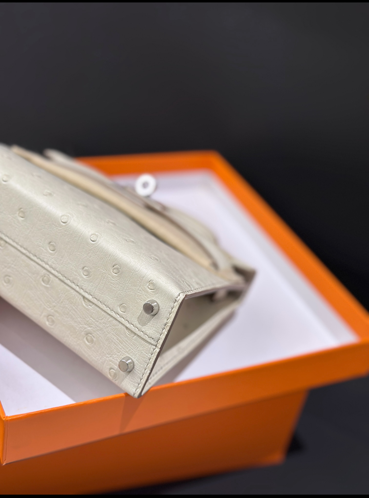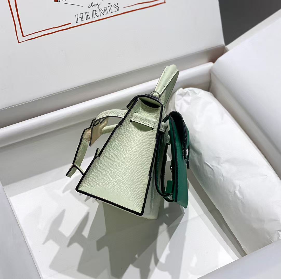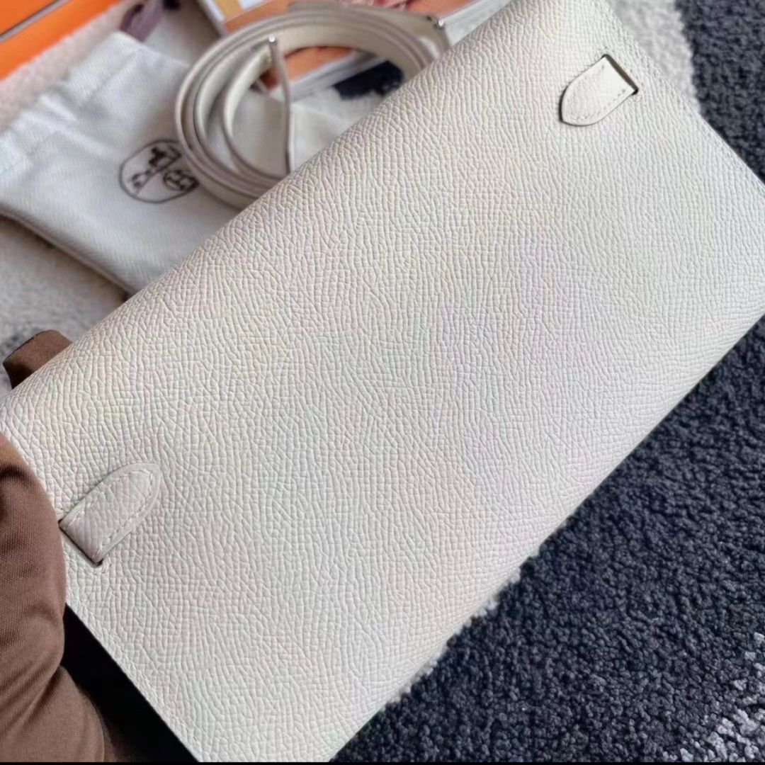 Mini Kelly II 19 Silver Buckle Glacier White Ostrich Leather Custom