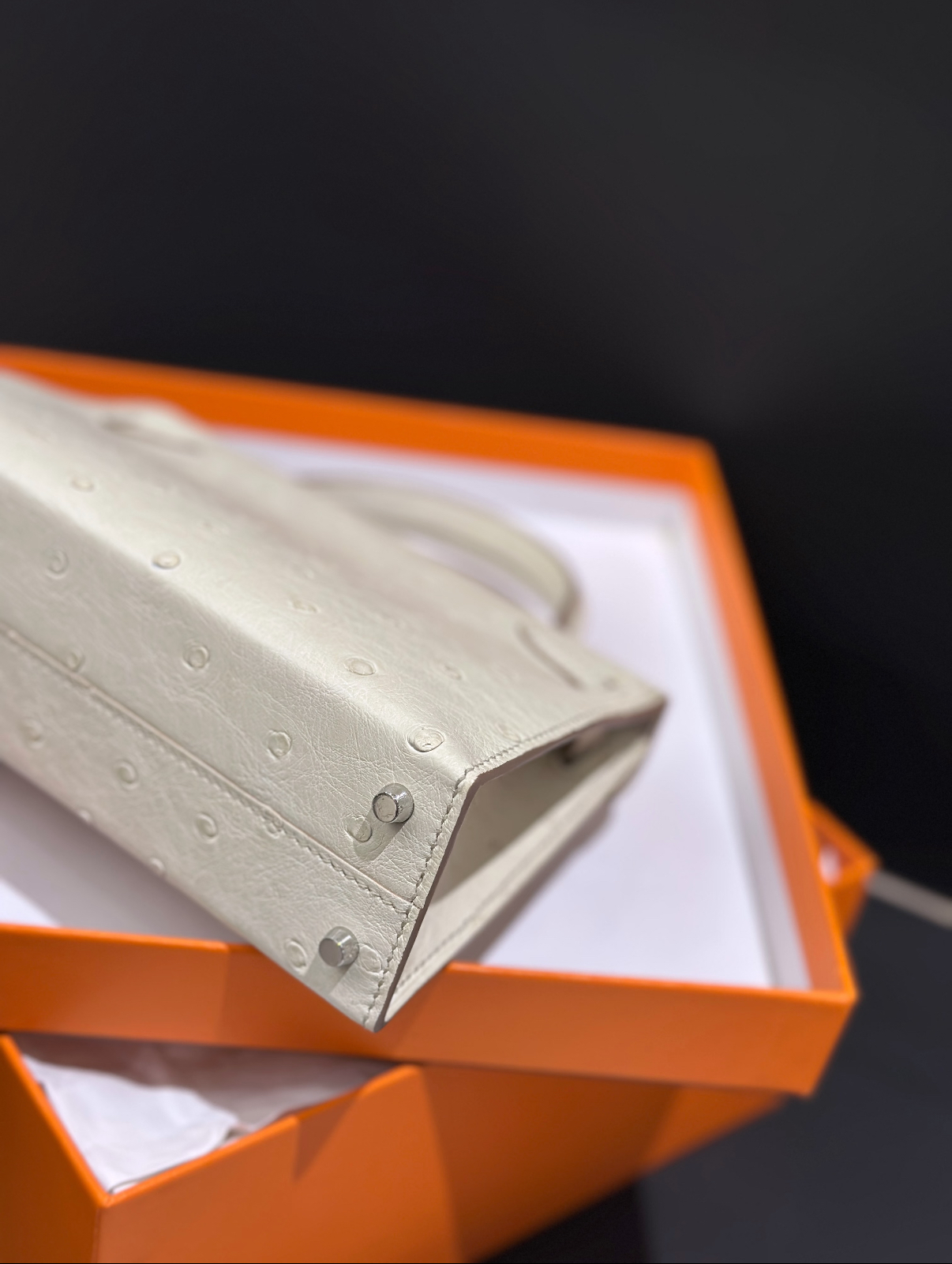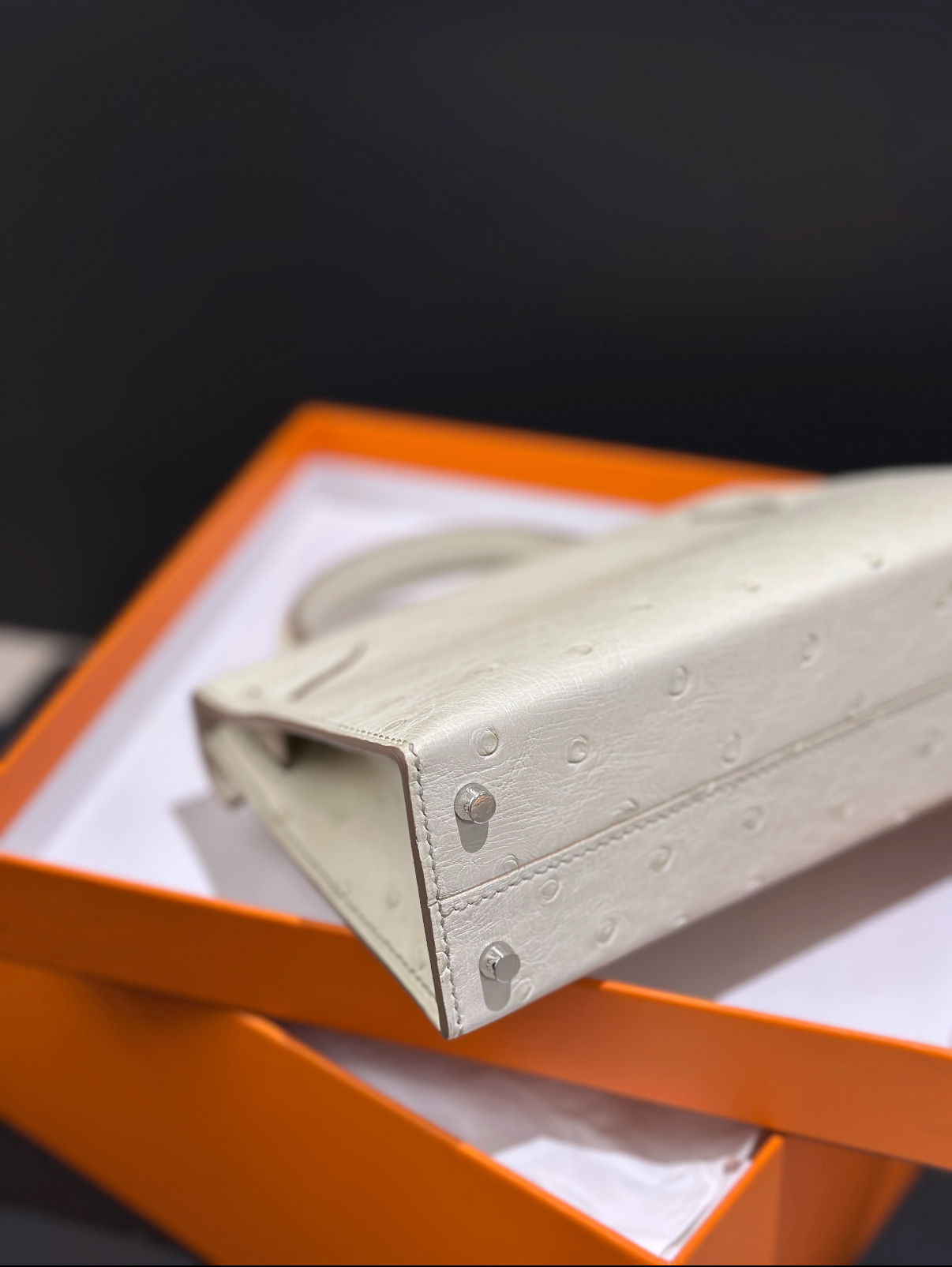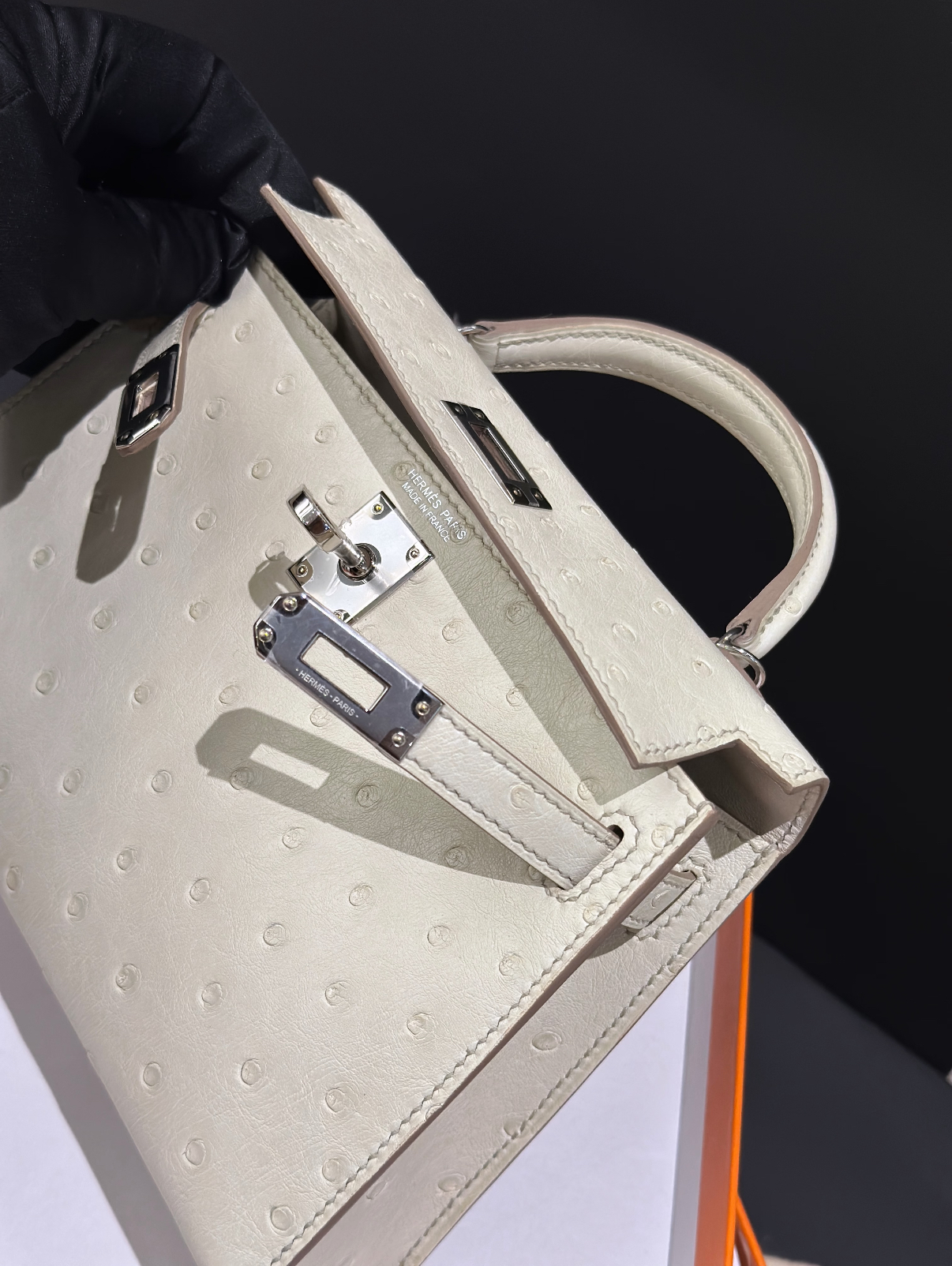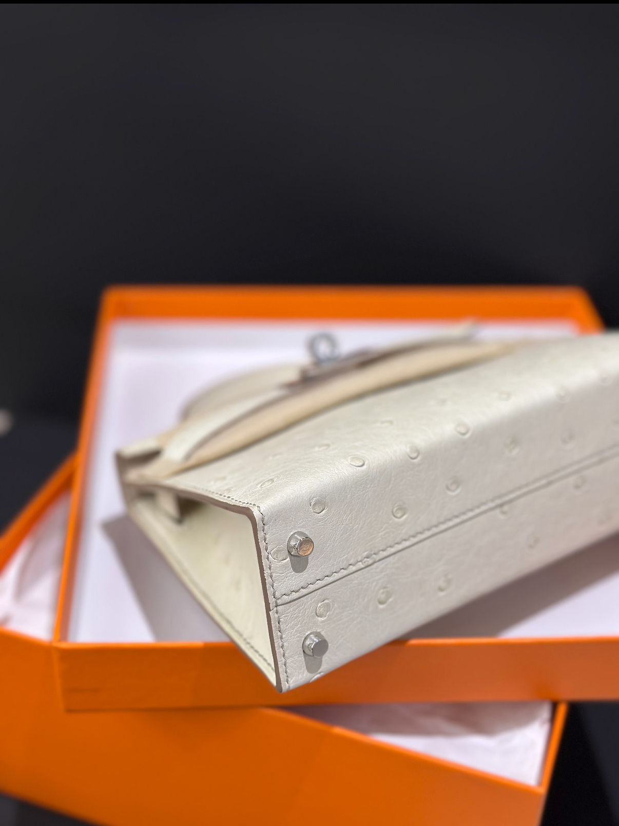 Mini Kelly II 19 Silver Buckle Glacier White Ostrich Leather Custom