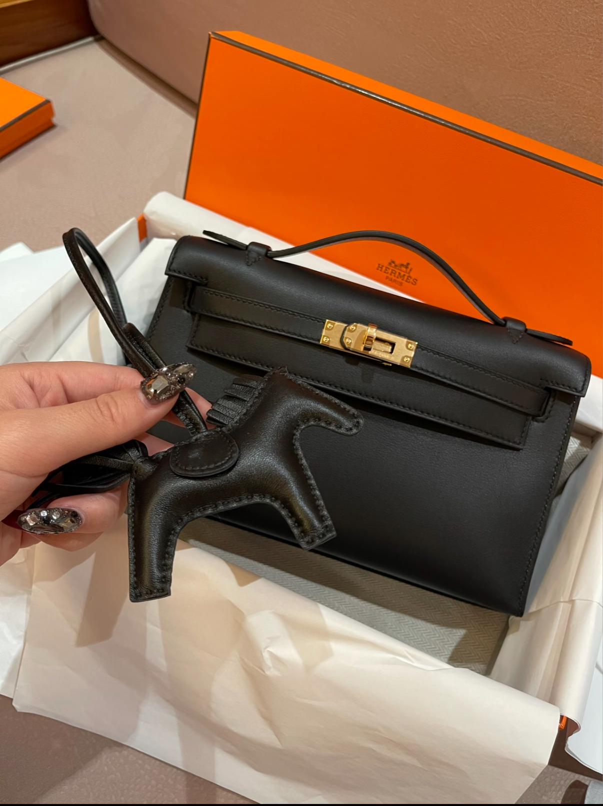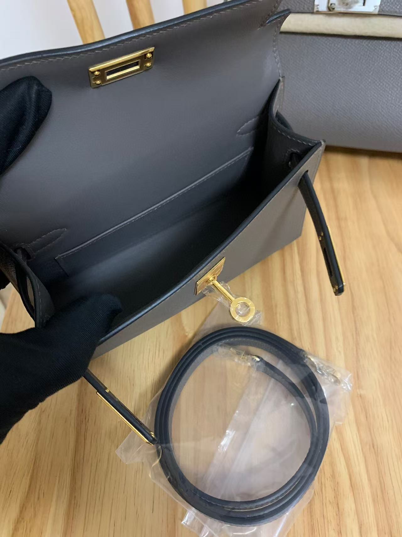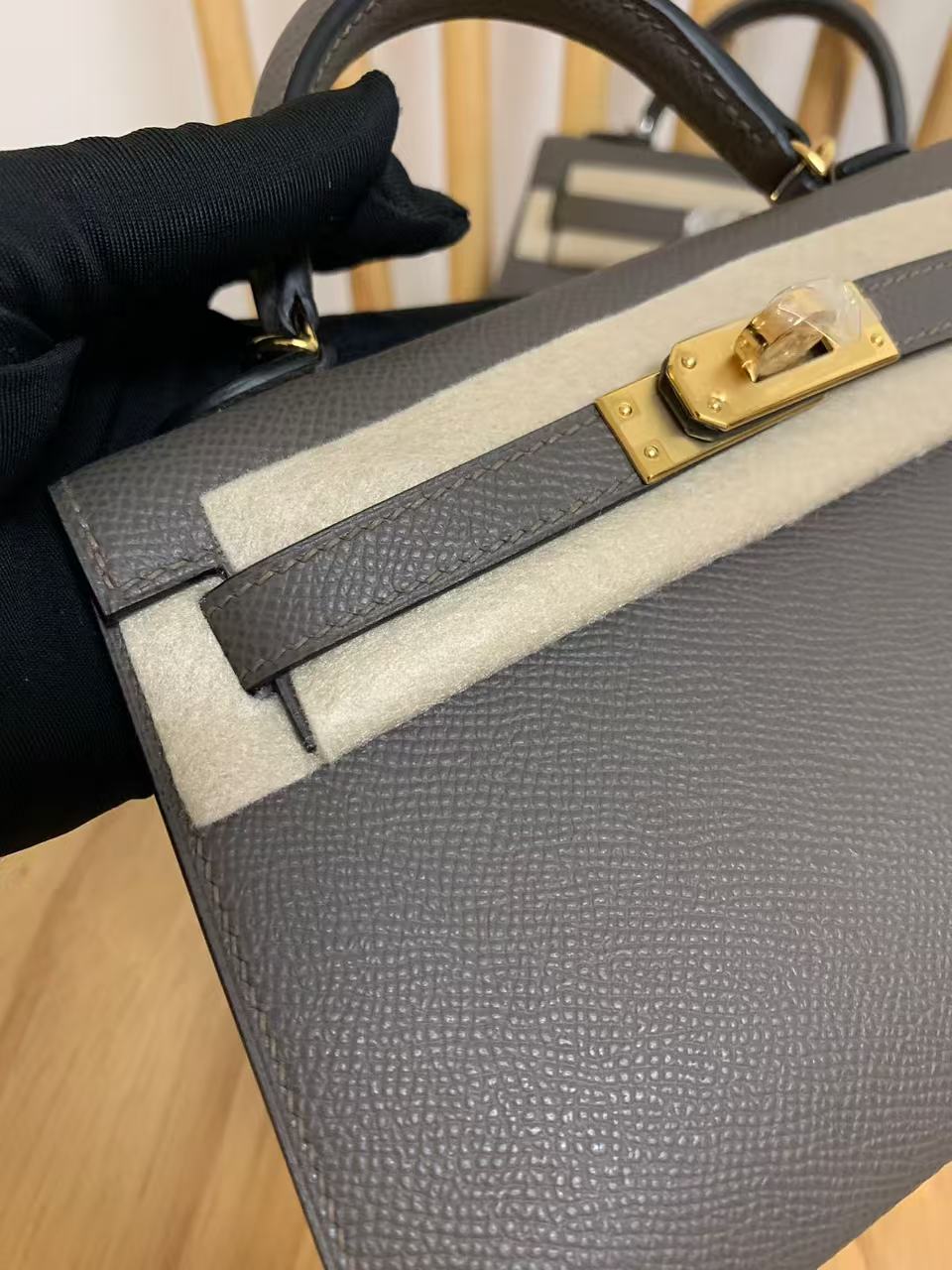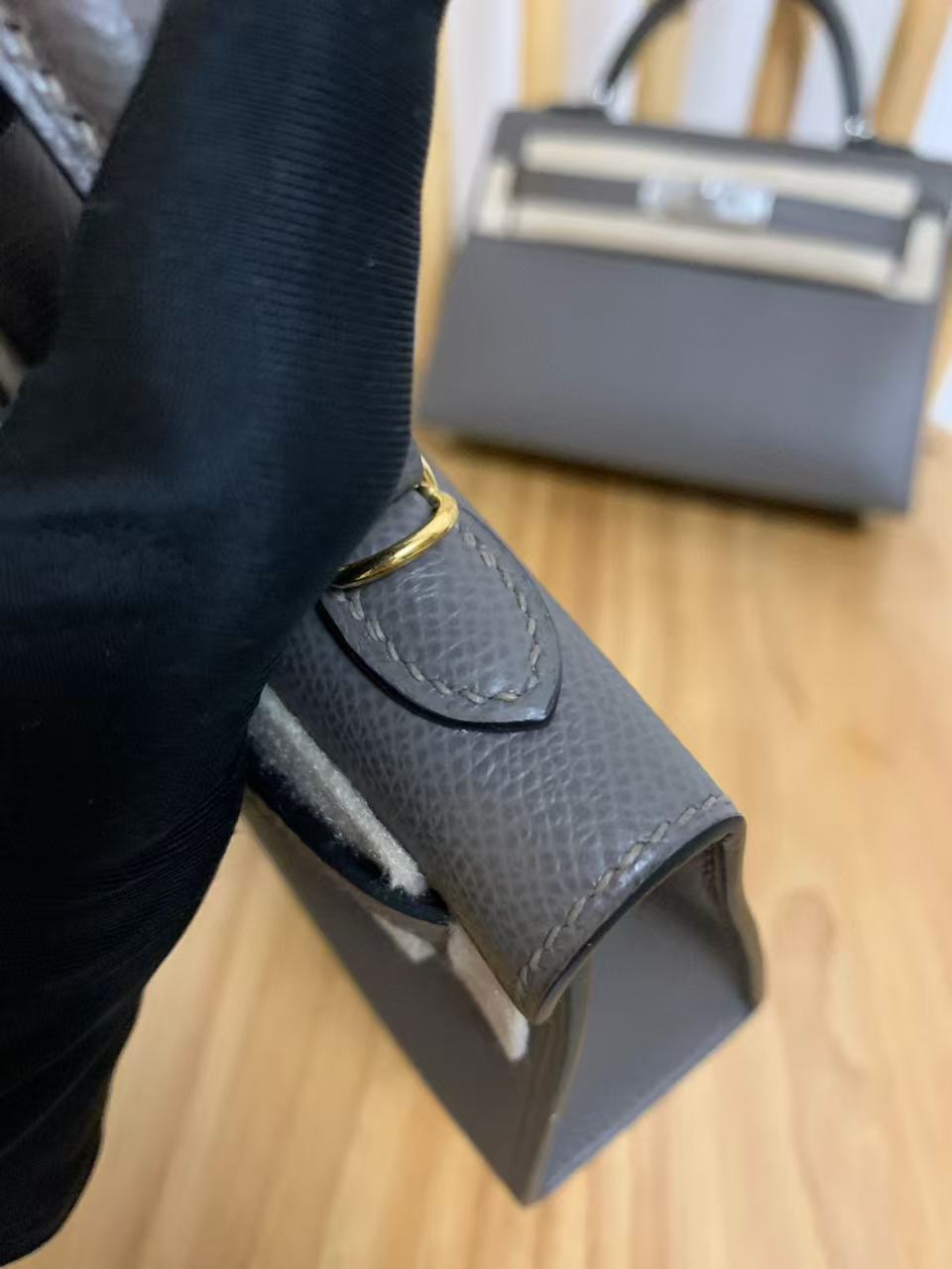 Kelly mini 2 19cm EPSOM ebony gold buckle custom