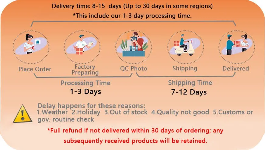 Delivery time: 8-15 days (Up to 30 days in some regions)